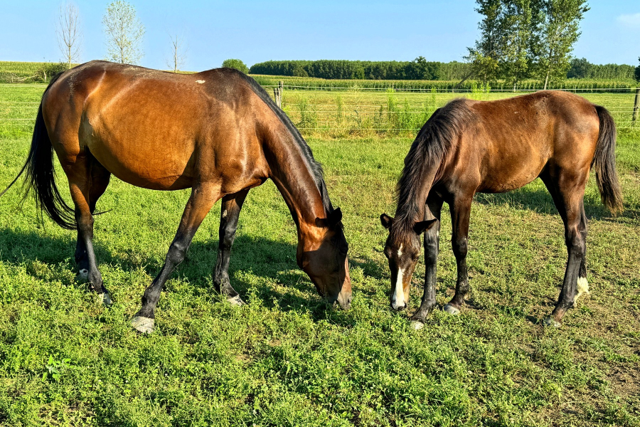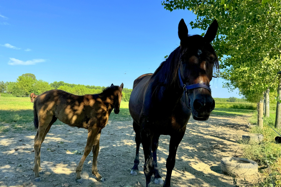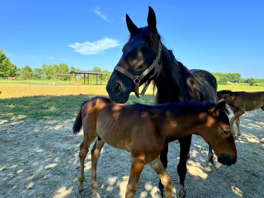 ...Loving Semola mit seiner Ammenmutter Argenta im Centro Equino Arcadia in der Nähe von Turin...