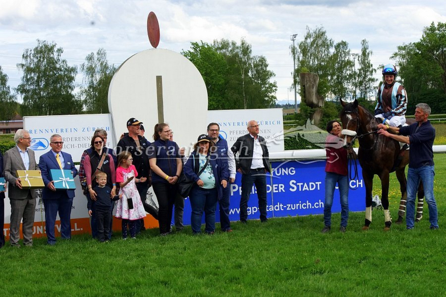 5. Mai 2024: Fandango erkämpft sich mit Carina Schneider den Sieg im Grossen Preis der Stadt Zürich.