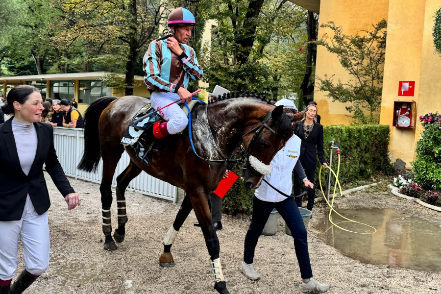29. September 2024: Fandango und Jürg Langmeier sorgen für die erste Gruppe-I-Platzierung für Stall Allegra: 4. Platz im Grossen Preis von Meran