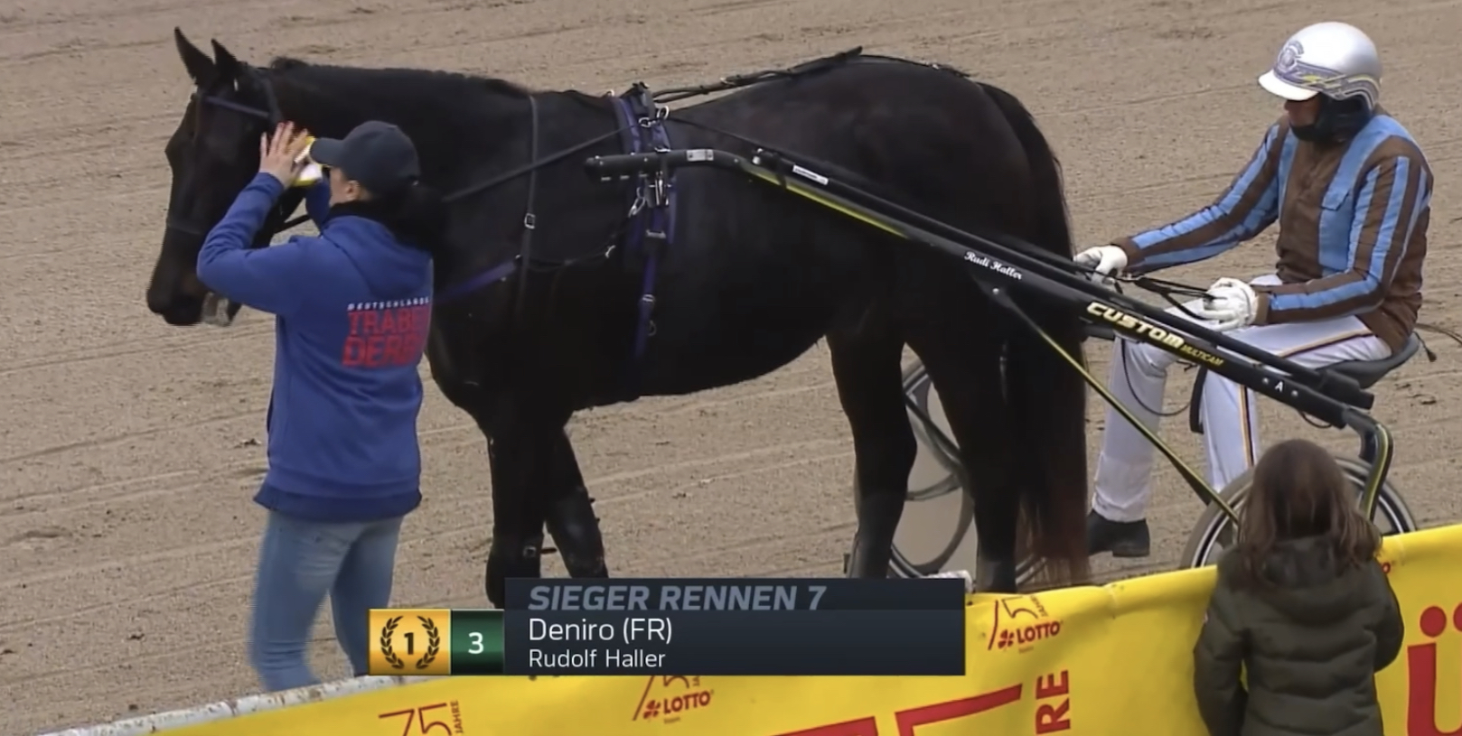 Heute folgte in Straubing die grosse DENIRO-Rudi-Show! Die beiden traten zu einem TF-Rennen als klare Favoriten an, nachdem das gewinnreichste Pferd im Feld leider Nichtstarter war. Wir hätten die Stute gerne gegen DENIRO laufen sehen, sie hätte 50 Meter auf ihn aufholen müssen. Wäre heute bestimmt nicht einfach geworden. Denn unser Achtjähriger ist offensichtlich sehr gut auf dem Posten. Rudi startete gut und liess ihn anschliessend regelmässig marschieren an der Spitze. Die beiden liefen nie Gefahr, das Rennen zu verlieren. Locker und leicht stiefelte DENIRO als Sieger ins Ziel - er hätte schneller und noch länger traben können, wenn es denn nötig gewesen wäre.