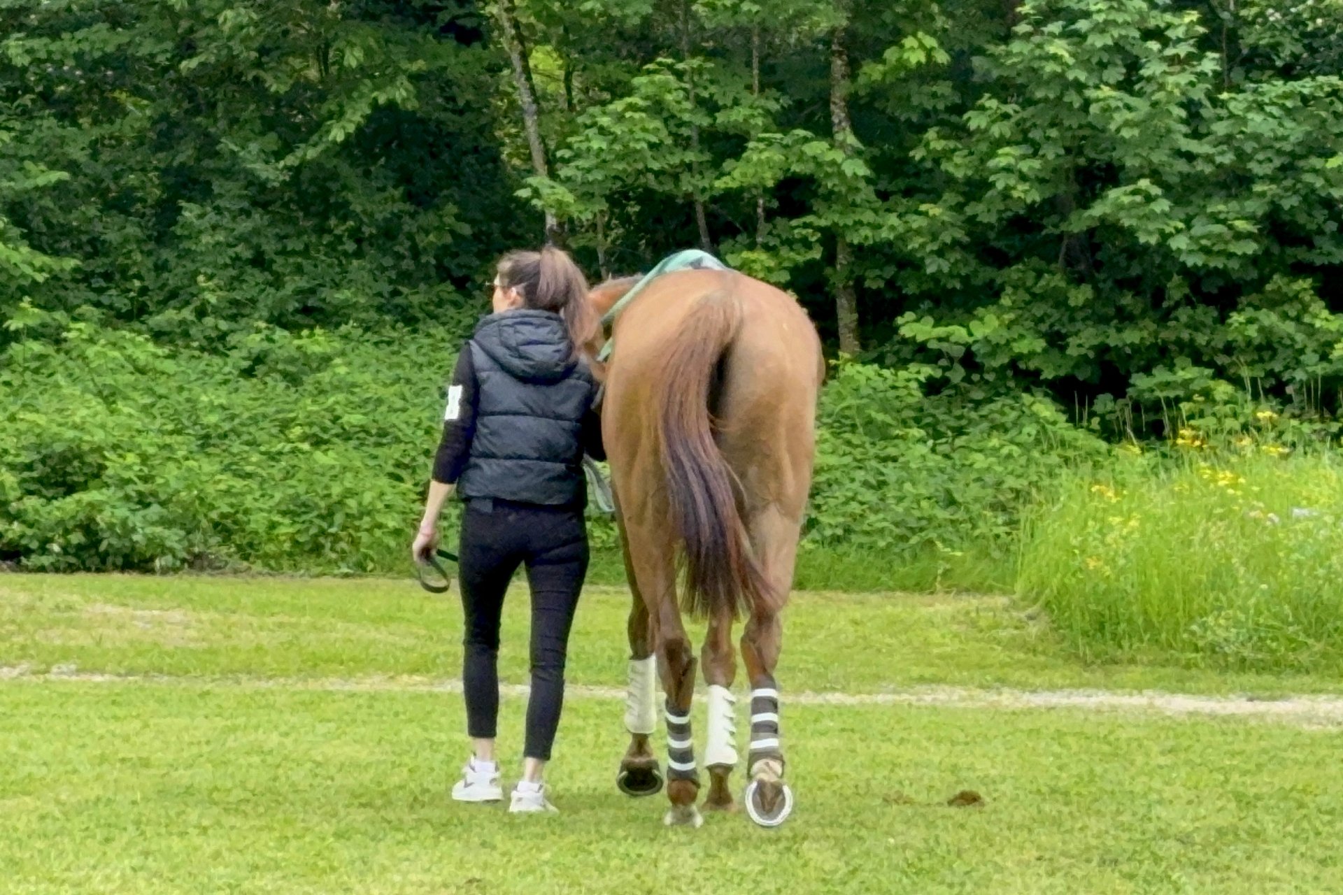 Im abschliessenden Cross war CUARTO an der Reihe. Die Schachen-Cross sind für ihn zu eng, sagt Jürg. In Maienfeld behagt es unserem Monsieur deutlich besser. Dennoch kämpfte er wiederum bravourös, machte nach dem letzten Hindernis einiges an Boden gut und verpasste den zweiten Platz nur um 2 Hundertstelsekunden. Dritter Platz und wieder eine gute Leistung. Er holte sich einen recht tiefen Schnitt an einem Hinterbein (ziemlich weit oben). Schmerzhaft, aber es sieht so aus, als würde es bald verheilen. CUARTO hat ja nun nach zwei Cross-Einsätzen ohnehin bereits wieder Pause.
