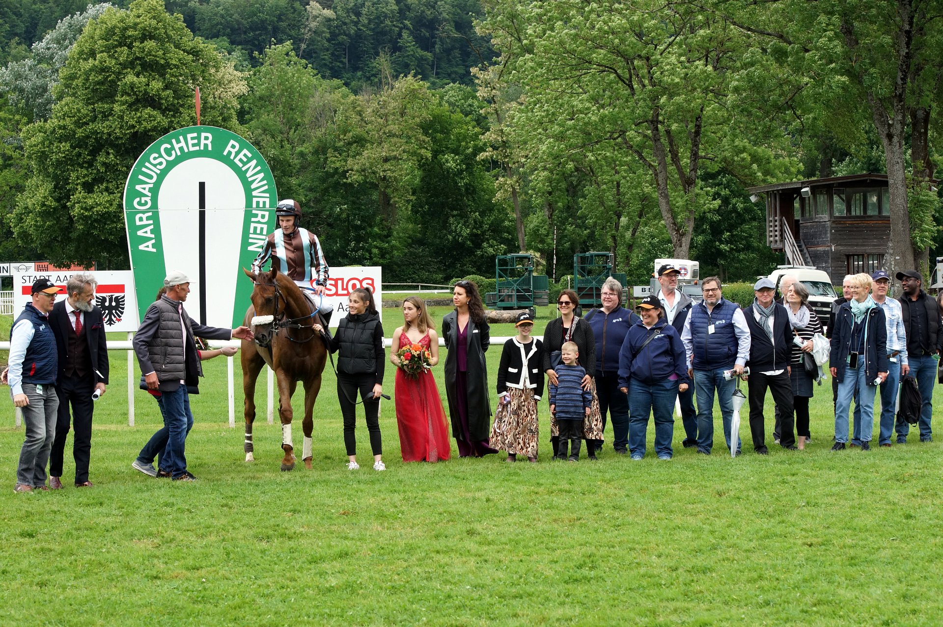Drei unserer vier Pferde gestern Sonntag in Aarau haben geliefert! Und wie sie geliefert haben. Los ging es mit KRAKAN, der als Favorit antrat und seiner Rolle schliesslich gerecht wurde. James Reveley hatte sein Rennen von der Spitze aus gestaltet, wurde aber eingangs des nicht einfach zu reitenden Schlussbogens innen (!) angegriffen. In der Folge kam es zu einer Kettenreaktion, KRAKAN wurde von einem nachfolgenden Pferd stark angaloppiert und verlor mehrere Längen. Dank seiner Klasse und der Jockeyship von James Reveley kam er tatsächlich nochmal heran und erkämpfte sich doch noch den Sieg. Eine Leistung, die unter diesen Umständen nicht hoch genug eingeschätzt werden kann. Wir sind glücklich, dass es mit dem Volltreffer geklappt hat - aber auch nachdenklich. Denn es hätte schlimmer kommen können, KRAKAN wird nach aktuellem Stand zum grossen Glück bald wieder okay sein.