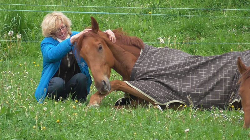 Natalie versucht Gitan auf der Weide aufzuwecken... rechts sein älterer Bruder Prince (Foto: MM)