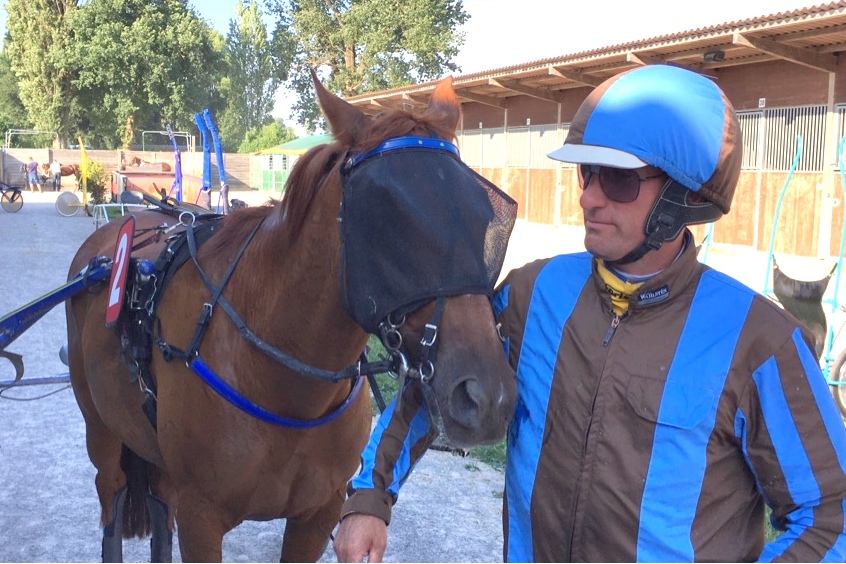 Rebel hatte im Amateur-Rennen erstmals Joey Vignoni im Sulky (Foto: Morgane Bürgin, horseracing.ch).