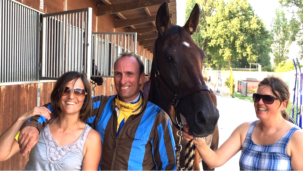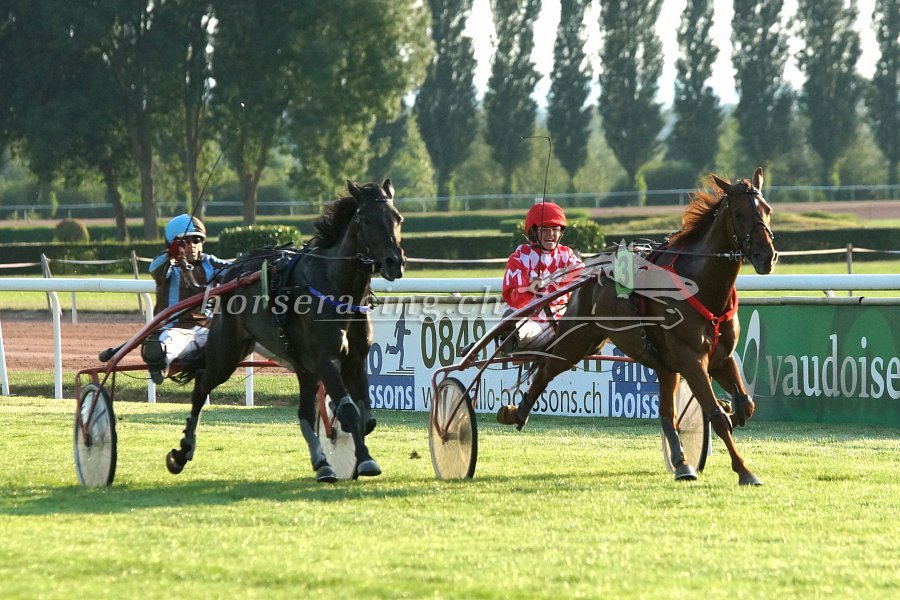 Rebel hatte noch mehr Pech in Sachen Rennverlauf. Sein Amateur-Rennen auf Gras, welches er mit Joey Vignoni wurde komplett verbummelt. Niemand wollte vorne gehen und so wurde es zu einem der langsamsten Rennen der aktuellen Saison. Zum Leidwesen von Rebel, der seiner Favoritenrolle so eben nicht gerecht werden konnte. Joey Vignoni machte das Beste draus und Rebel zeigte von ganz hinten im Einlauf einen starken Finish, der ihn noch auf Rang drei brachte. "Mit mehr Tempo hätten wir gewonnen", war Joey hinterher überzeugt. Rebel hat wohl nicht einmal begriffen, dass das ein Rennen hätte sein sollen... Am 1. August hat er erneut ein Amateur-Rennen, da hoffen wir auf mehr Glück. Er und Christophe, der einen tollen Job macht mit Rebel, hätten einen Volltreffer längst verdient.