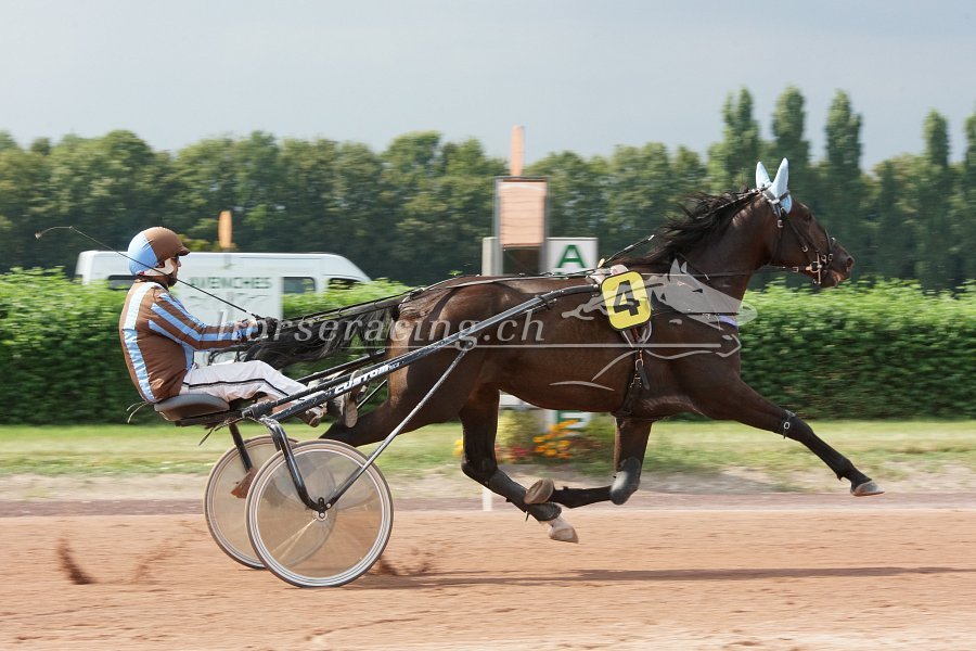 Wir hofften, dass Light die Tages-Bilanz aufpolieren würde. Doch auch das klappte nicht. Nach gemächlichem Start wollte Loris mit ihm aufrücken. Vor der Tribüne bekam Monsieur Light etwas Sand an den Kopf, den ein vor ihm trabender Gegner aufgewirbelt hatte (weil er nicht unmittelbar in dessen Rücken war, konnte dies so passieren). Grund genug, den Kopf hochzunehmen und seine Galoppkünste zu zeigen. Schade, denn danach gab er Loris ein sehr gutes Gefühl, trabte "vorne ohne" wunderschön und hätte wohl ein gewichtiges Wörtchen mitreden können in dem Rennen.