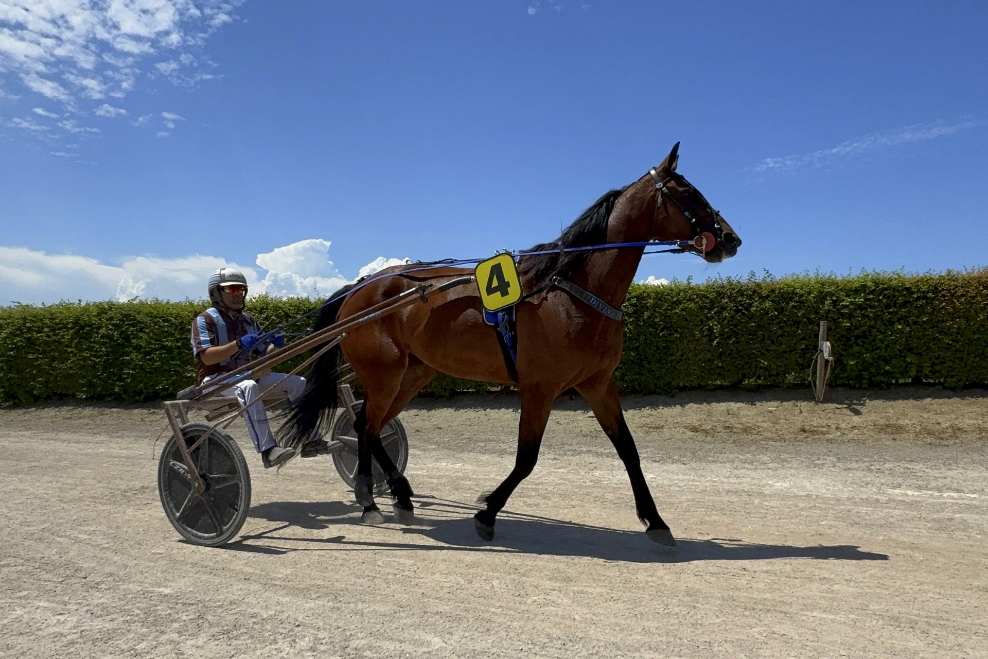 Zunächst allerdings lief es nicht wie erhofft. Zwar zeigte ESPADA ein starkes Rennen. Obschon er in der Anfangsphase mit Loris etwas mehr tun musste als geplant, sprintete er in der Zielgerade für einen Moment sogar an die Spitze. Er zog seinen starken Effort nicht ganz durch, wurde aber guter Dritter. Dies reichte, um für die Doping-Probe ausgewählt zu werden (in den sechs Rennen kam kein einziger Sieger zum Zug, lediglich zwei Drittplatzierte. Etwas speziell, an einem Tag mit fünf Finals). Mehrere Minuten nach dem Rennen ertönte die Sirene, es gab eine Gangartuntersuchung gegen ESPADA - und die Gangartrichter entschieden, ihn zu disqualifizieren. Streng, wie wir finden (und damit sind wir nicht allen. Selbst aus Frankreich bekamen wir einige Nachrichten, der Entscheid sei sehr streng). Wie auch immer, ESPADA lieft sehr gut. Er soll nun entweder in Frankreich (wo er interessanterweise noch nie "unrein" disqualifiziert wurde) oder am 8. August in Avenches auf Gras laufen.