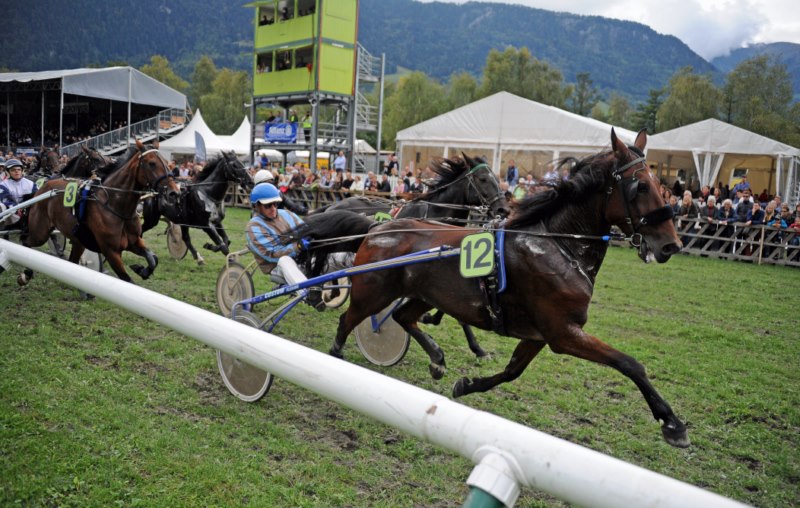 Und Belgino lieferte tatsächlich eine bärenstarke Vorstellung ab. Marcel ging mit ihm wie besprochen schon früh an die Spitze und hatte die ganze Zeit ein sehr gutes Gefühl. Belgino machte Eindruck. In der Zielgeraden schien er alles im Griff zu haben, der Vorjahressieger Pacha de Ry, der in zweiter Spur neben ihm trabte, war nicht in der Lage ihn zu überholen. Doch leider rückte er Mitte Einlauf von der zweiten auf dritte Spur, wodurch sich für die dahinter eingeklemmte Racing Fox eine Lücke auftat. Die endstarke Stute nutzte die Einladung und kam immer besser auf. Belgino war etwas überrascht, dass er nun doch nochmal zulegen musste und auf dem Zielstrich hatte effektiv seine Gegnerin die Nase, respektive den Kopf vorne. 3 Hunderstelssekunden fehlten Belgino im Ziel zu seinem ersten Schweizer Sieg. Wir sind aber sehr zufrieden, hatte er doch einige Umstellungen und auch zwei Reisen (von Hamburg nach Straubing und von Straubing nach Holziken) zu verkraften.