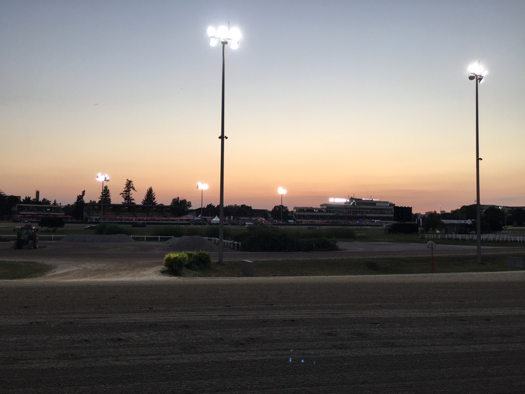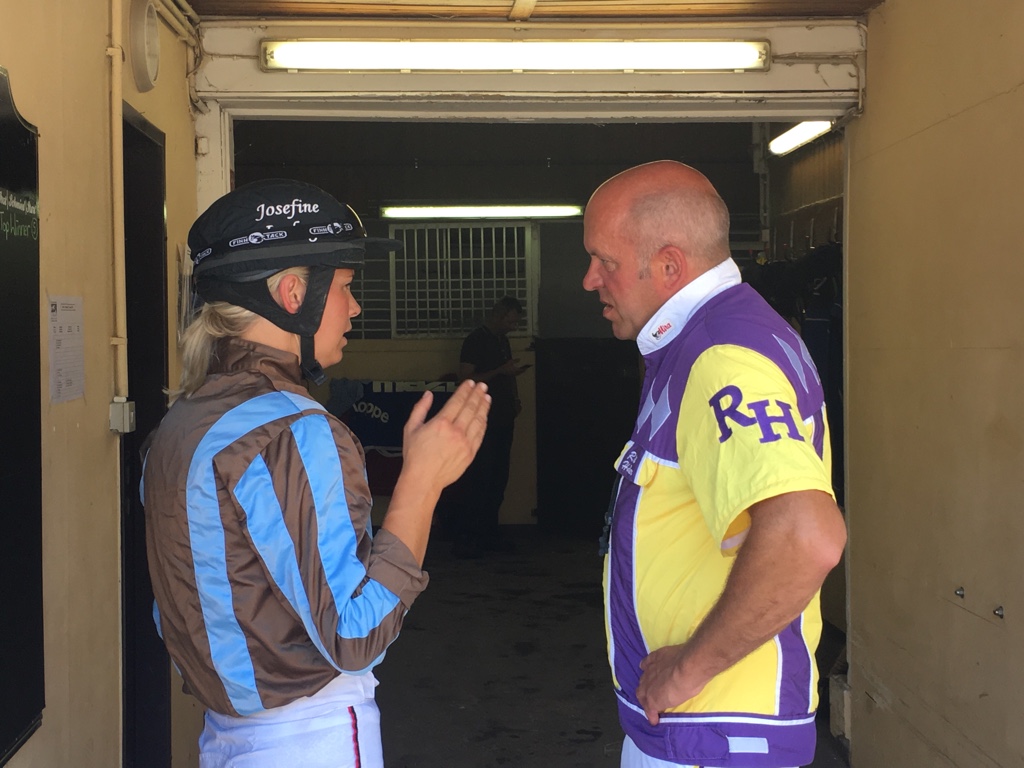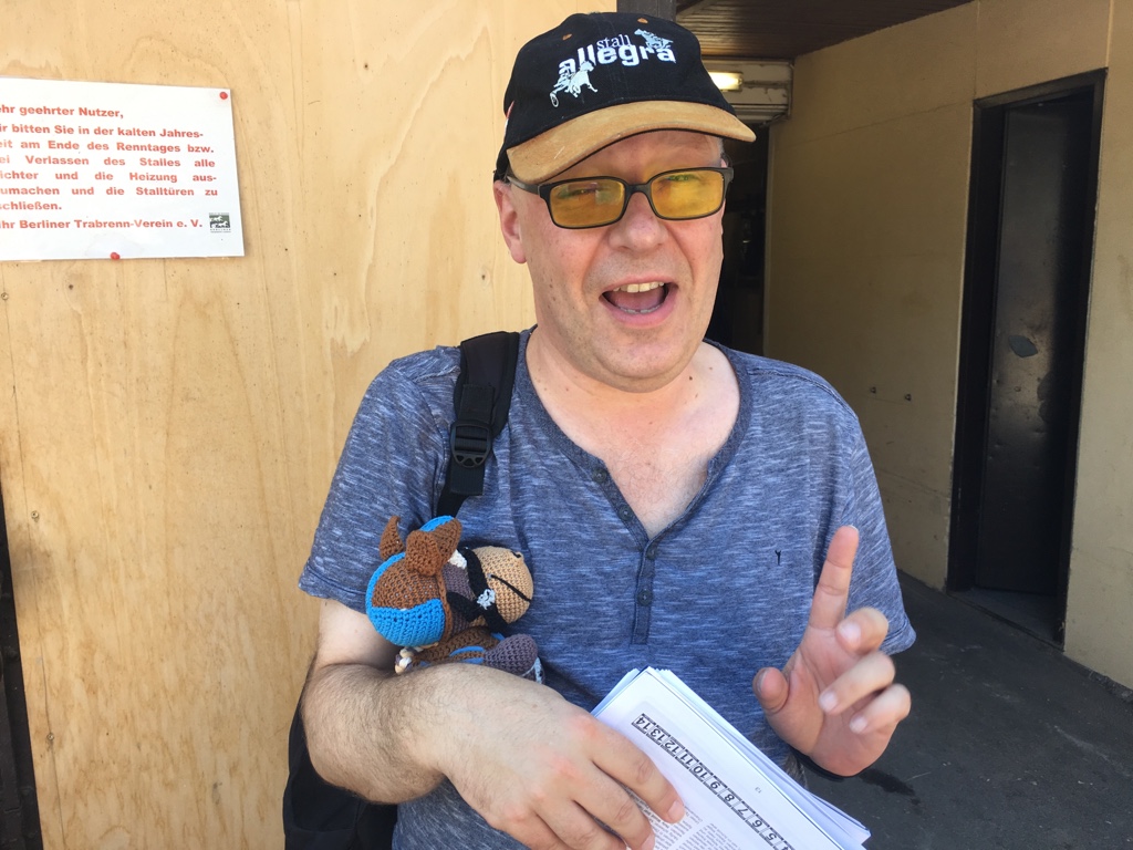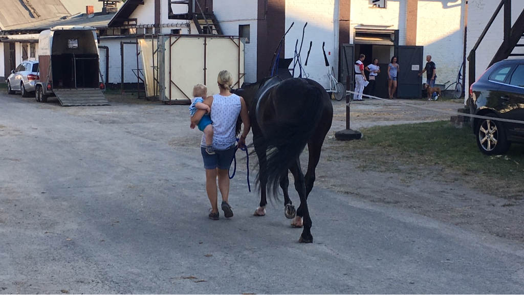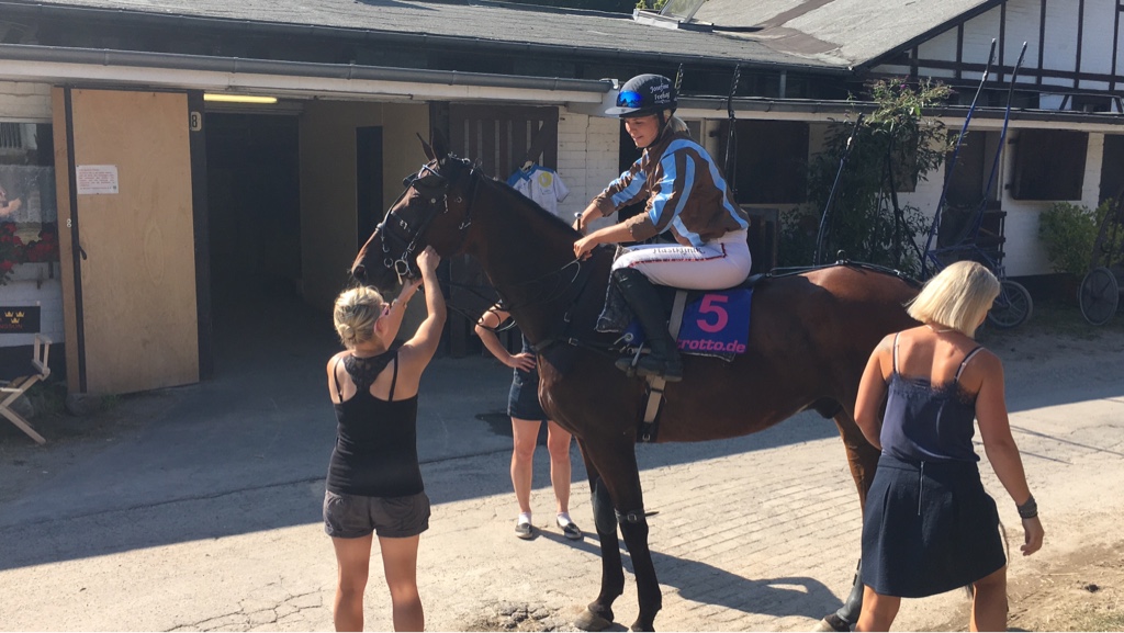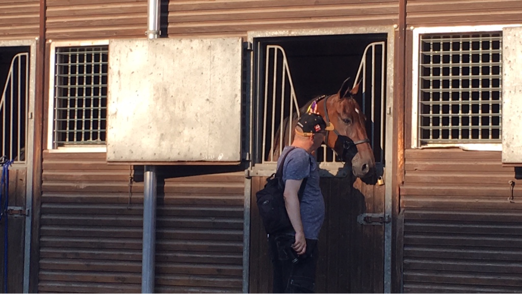 Nachdem wir zwischenzeitlich im nahe gelegenen Hotel eingecheckt hatten, hoffen wir auf Deniro. Der Heat war sehr gut gewesen, auch wenn Rudi zu bedenken gab, dass Deniro allein besser sei als mit anderen Pferden. Nun, es ging mit einem Fehlstart los - was uns sicher nicht geholfen hatte. Dann beim gültigen Start war Deniro noch nicht einmal richtig auf der Bahn, als die Pferde aus dem zweiten Band bereits angeschossen kamen. Er galoppierte und hatte schon so viel Boden verloren, dass ein Spitzenplatz bereits weg war. In der Folge deutete er Potential an, machte sich aber durch erneutes Galoppieren selbst alles zunichte. Da wartet noch Arbeit auf Rudi und Marie. Aber wir sind überzeugt, dass sie die richtigen Knöpfe finden bei ihm. Mit Autostart und auf einer grösseren Linksbahn ist Deniro sicher besser aufgehoben. Die Westschweiz lässt grüssen.