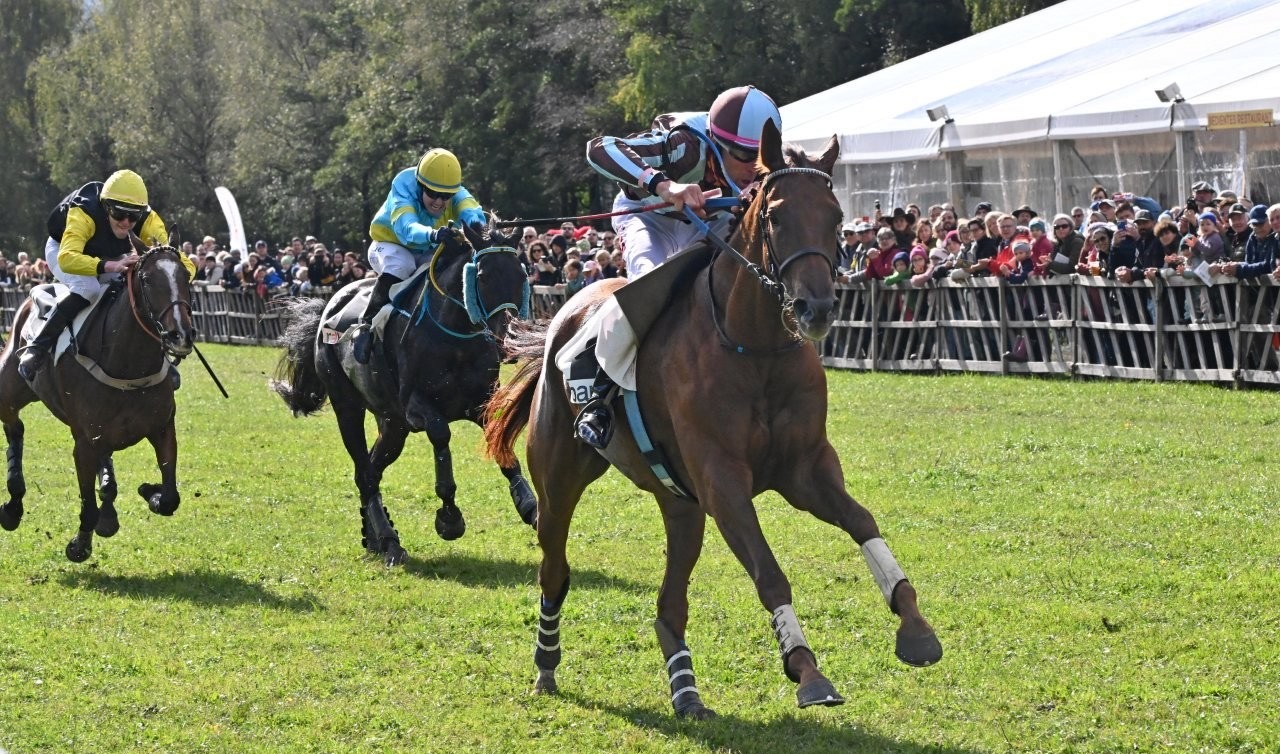 CUARTO schaffte 2022 das Husarenstück, den Grossen Preis der Schweiz und den Grossen Preis der Stadt Maienfeld zu gewinnen - innerhalb von einem Monat das wichtigste Steeple und das wichtigste Cross-Country unseres Landes! Im darauffolgenden Frühling verletzte er sich, kehrte eineinhalb Jahre später zurück und war seither bei sechs Cross-Einsätzen viermal Zweiter, einmal Dritter und gewann im Herbst 2024 überlegen den Grossen Preis des Cross Club Maienfeld. Nach dem dritten Platz in Aarau machte sich die alte Verletzung leider wieder bemerkbar, so dass eine Fortsetzung der Rennkarriere in den Sternen steht. Claudia und Jürg haben CUARTO übernommen, er wird aktuell in Frankreich gepflegt, seine Mit-Züchter haben ihm extra seine alte Boxe wieder hergerichtet und freuen sich riesig, dass er zurück ist. Sie gehen jeden Tag mehrmals mit ihm und AMFI an der Hand spazieren. Wenn CUARTO nochmal auf die Rennbahn kommt, freut sich vor allem einer: Jürg sagte im Frühling, CUARTO sei der Grund, weshalb er noch immer Rennen reite...