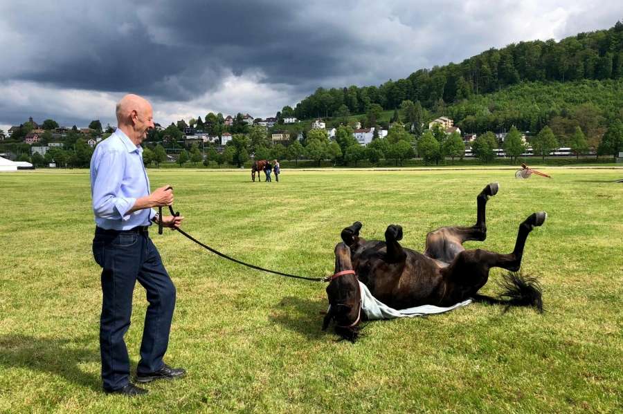 Semola mit Loris auf dem Weg zum Führring, begleitet von Odile. (Foto: Markus)