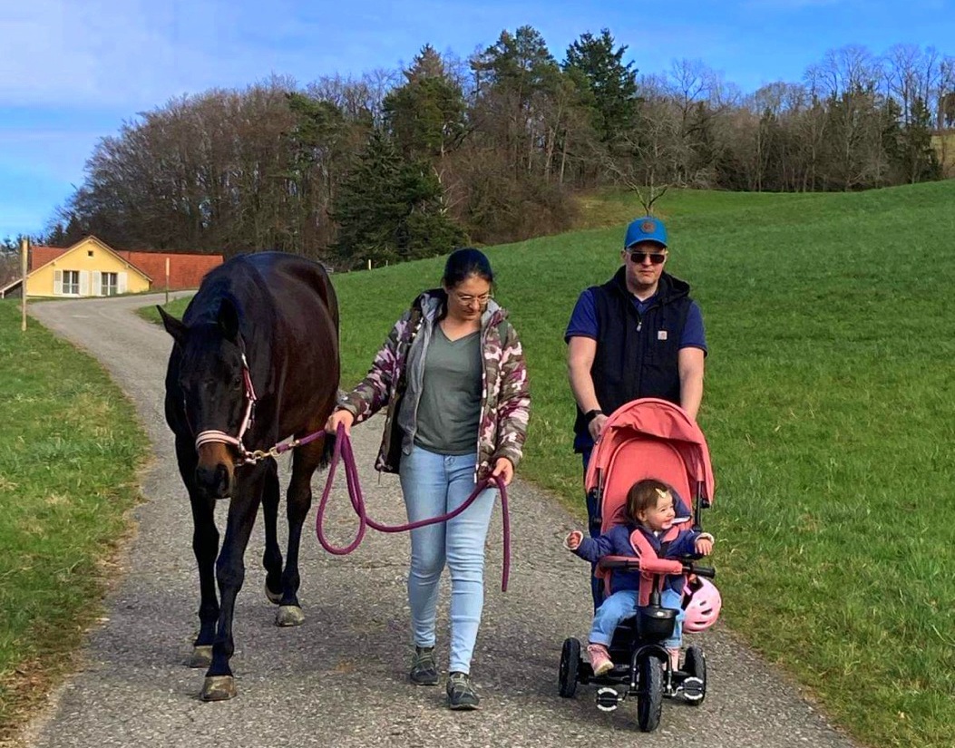 Dasty beim Familienspaziergang mit Stephie, Livia und Maurus (Fotos: zVG)