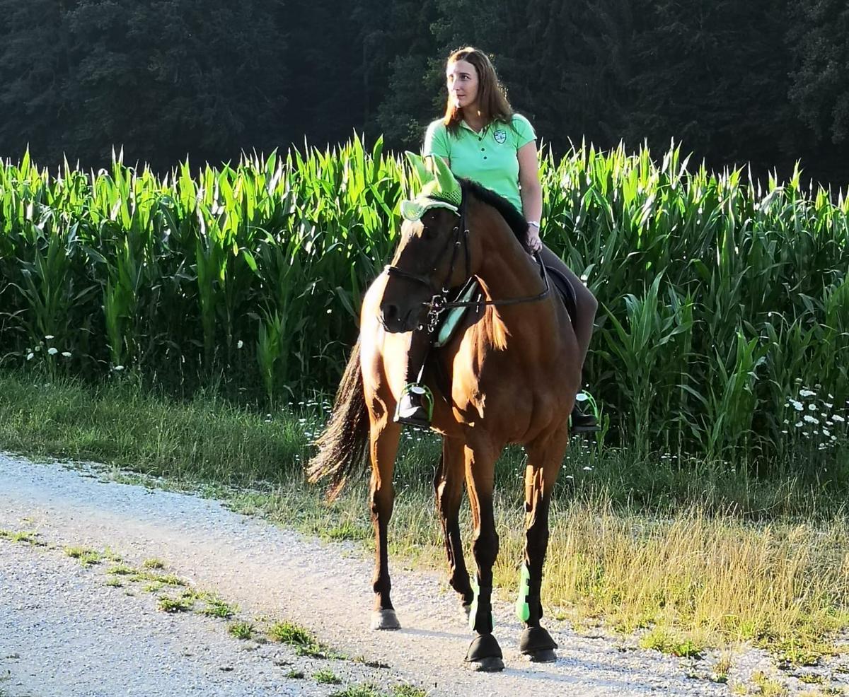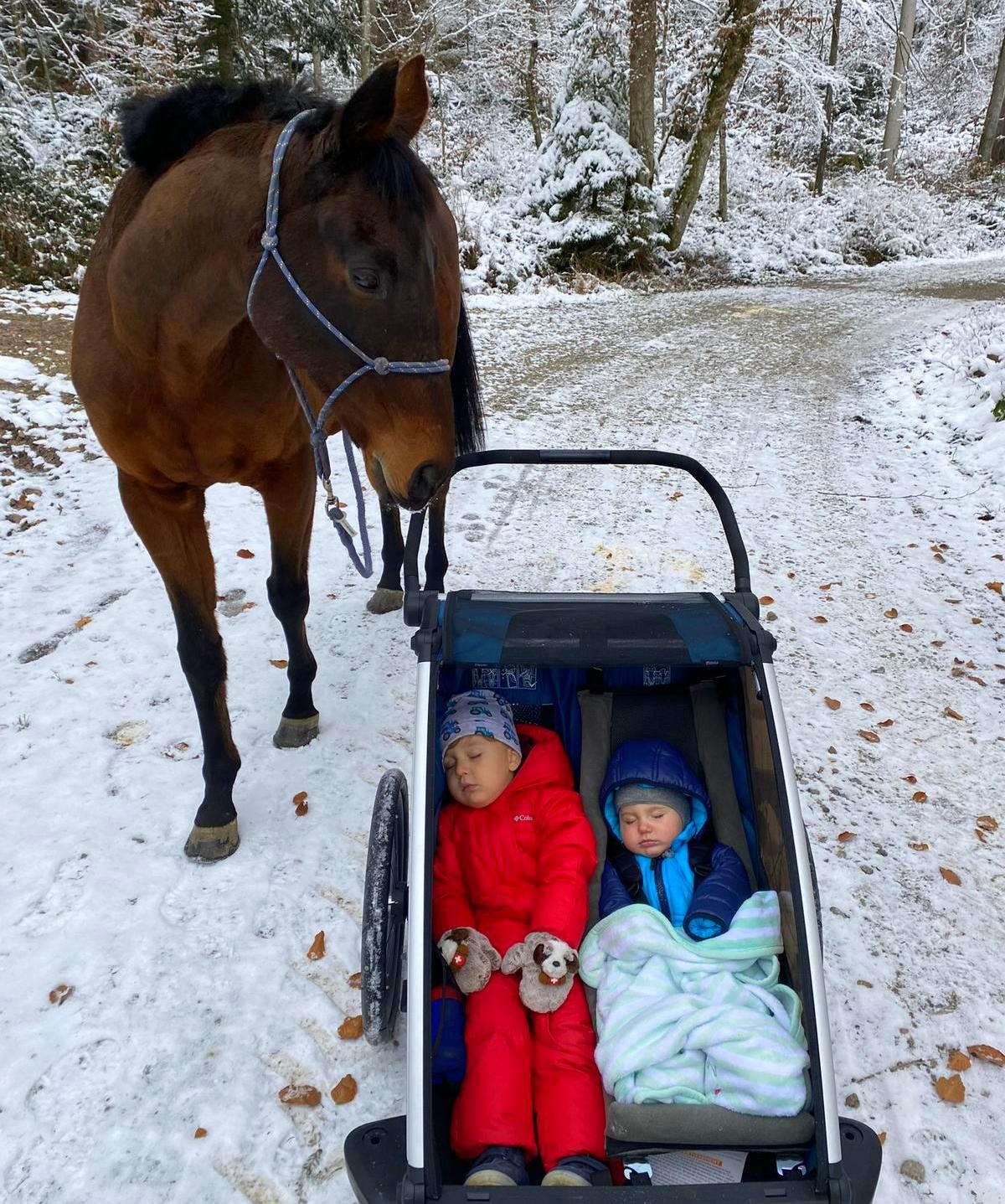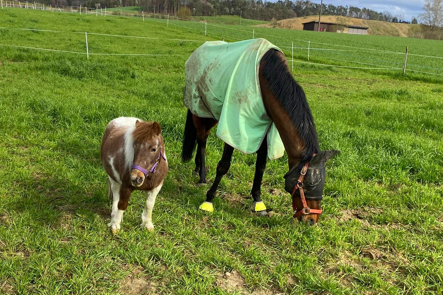Zum Glück fanden wir bei Ramona für ihn einen schönen Platz. Er wohnt immer noch ganz in der Nähe von uns im Zürcher Unterland und wir wissen, dass es ihm gut geht. Gut ist eine Untertreibung. RAYYAN hat das grosse Los gezogen, er hat eine ganz grosse Auslaufboxe, das ganze Jahr steht ihm viiiiel Weide zur Verfügung und Ramona liebt ihn über alles. "Bald ist er 15 Jahre bei mir, wir haben soooo viel erlebt. RAYYAN ist bei mir ein klassisches Freizeitpferd. Wir geniessen vor allem gemeinsame Ausritte, seit ich Mama bin, sind es öfter 'nur' Spaziergänge. Letzten Sommer durfte ich auch den ersten gemeinsamen Ausritt mit meinem Sohn erleben. Ich kann mich wirklich voll auf RAYYAN verlassen. Er ist einfach eine coole Socke! Mein Seelenpferd."