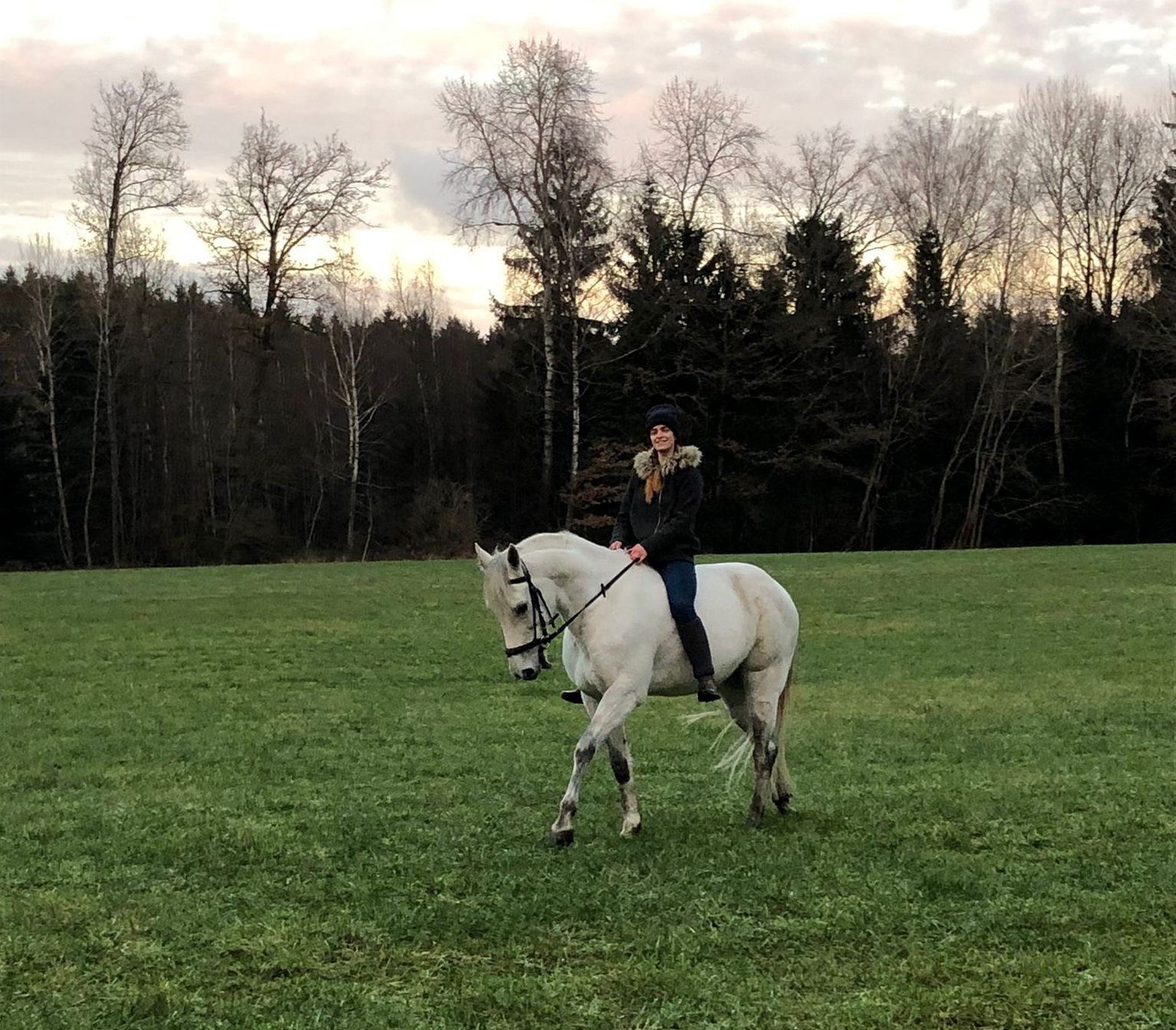 Bei seiner neuen Familie in Oberbayern hat sich VENTO bestens eingelebt. "Er hat sich zu einer regelrechten Galoppkanone entwickelt. Der brettert wie ein Irrer, wenn wir um die Wette reiten. Ist halt doch ein Rennpferd", schrieb uns Birgit, "Manchmal springen wir beim Ausreiten ein kleines Hindernis, nix hohes, das macht er super und er wird auch dann immer sehr gelobt. Er ist einfach ein lieber Tropf".
