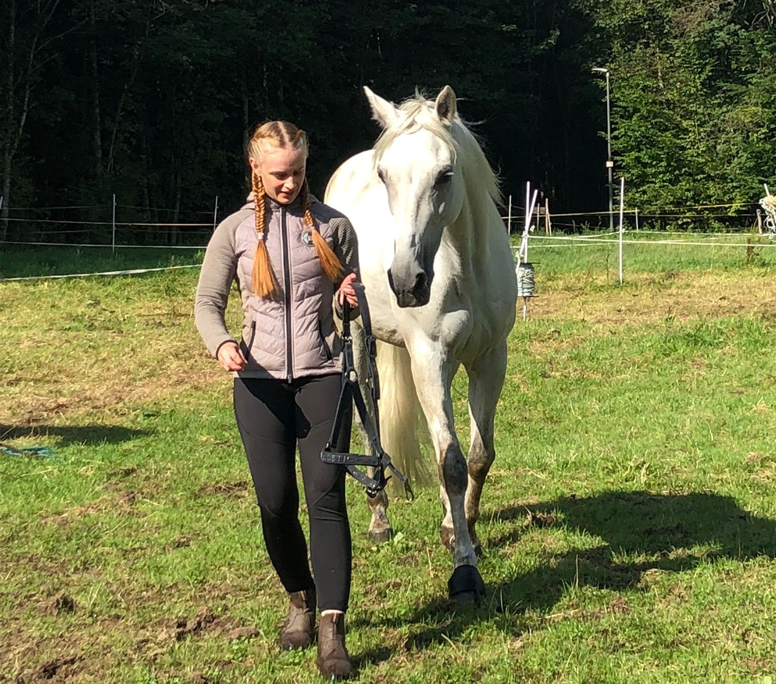 Auf die Frage, was VENTO für Aufgaben habe, kam diese schöne Antwort von Birgit: "Seine Aufgabe ist, meine Tochter glücklich zu machen! Sie liebt ihn abgöttisch. Vento ist bei uns ei reines Freizeit-/Geländepferd. Wir reiten ausschliesslich in der Natur. Vor allem schnell und sportlich, aber er will das ja so. Und seit kurzem darf er auch mal kleine Hindernisse springen. Aber das wird nicht mehr werden, denn mit seinen 'Entenlatschen' soll man das nicht übertreiben."