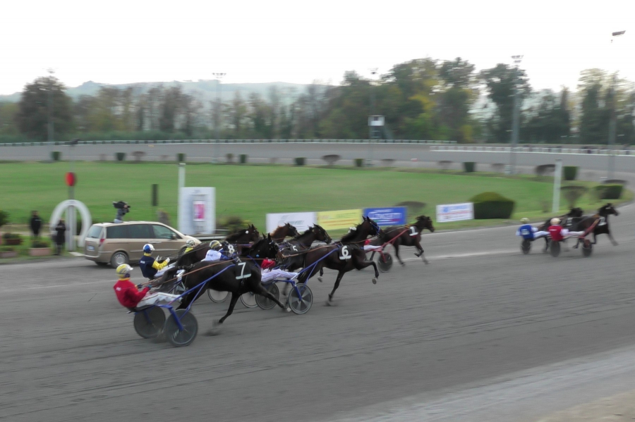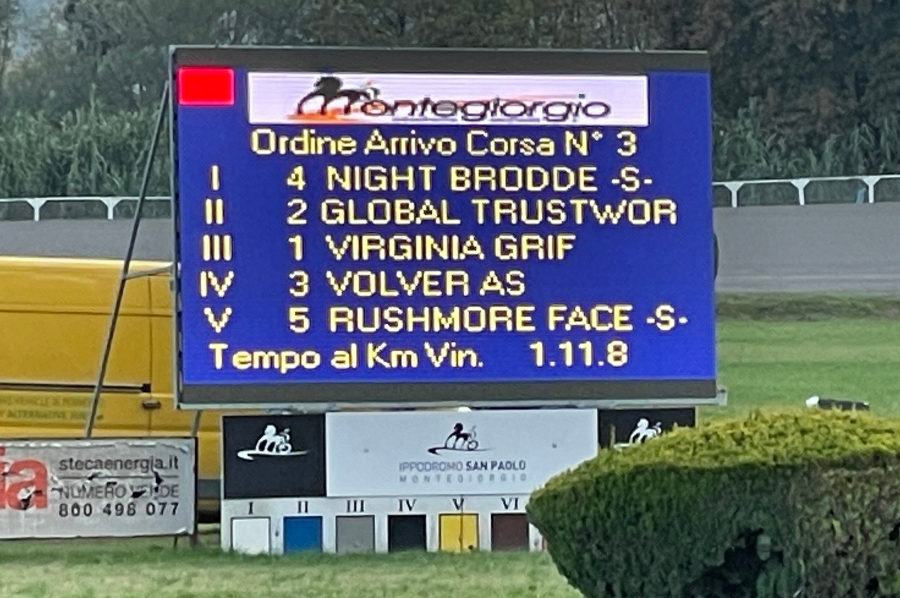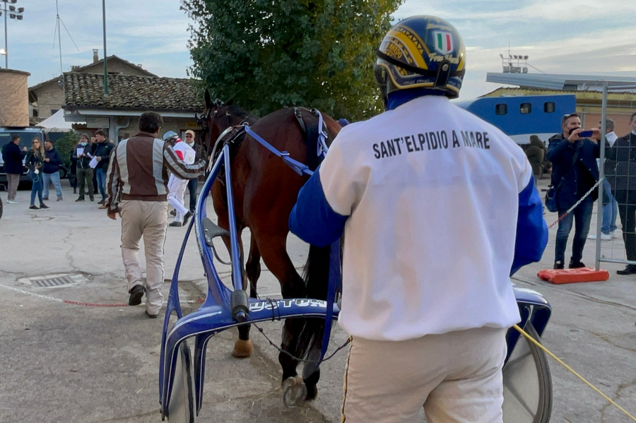Montegiorgio ist speziell, in jeder Hinsicht. Ein Riesen-Spektakel mit fröhlichen, aufgestellten Leuten. Leckeres Essen überall. Und eine unvergleichliche Stimmung. Die Rennbahn mit nur 800 Metern auf Spezialisten zugeschnitten. RUSHMORE ist kein solcher, das war recht schnell zu sehen. Zumal er mit Startposition 5 keine ideale Nummer zugelost bekommen hatte. Im Prinzip hat kaum eine Chance, wer nicht an den Rails durch die Bögen traben kann. Das ging auch der Klasse-Stute Bahia Quesnot so - 4. im Vorlauf und dann im Final ebenfall 4. trotz aller Anstrengungen (zudem wurde ihrer Crew am Morgen vor dem Rennen kurzerhand noch das neue Sulky im Wert von 12'000 Euro geklaut...).
