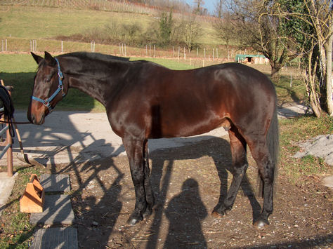 Endlich die ersten Fotos von Gali. Wir sind immer noch sehr glücklich dass Galion bei uns ist. Mittlerweile kann er recht gut an der Longe galoppieren, sogar mit Reitergewicht schafft er es nun ohne zu schleudern in der Kurve. Ich habe ihn ans Kutsche-Ziehen gewöhnt, was ihn anfänglich störte, da er es komisch fand, soviel Gewicht hinter sich herzuschleppen. Nun lernt er, auch bergauf "schwerere" Lasten zu ziehen. Das Ziel ist, dass wir mit unseren beiden Pferden zweispännig ausfahren können.