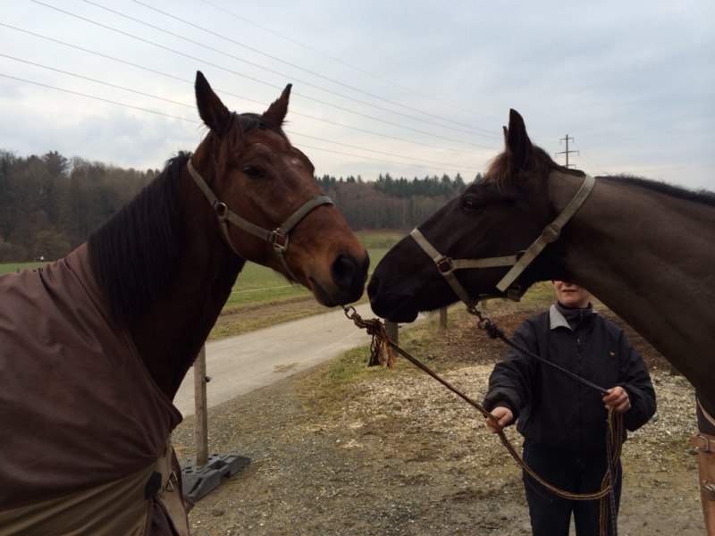 Quito (rechts) beschnuppert Prince beim Paddock-Wechsel.