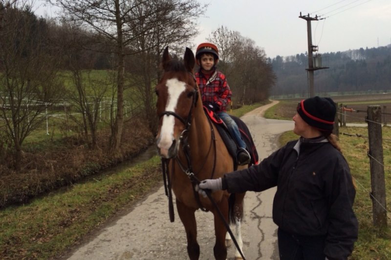 Dafür stand am Samstag für Noci eine ganz andere, viel leichtere Aufgabe auf dem Programm. Er machte mit Robin auf dem Rücken (ob er ihn überhaupt spürte, den ultraleichten Filius der Trainerin?) eine Spazierrunde. Nun, Noci machte seine Sache sehr gut, wie Robin auch. Beide waren ungemein stolz.