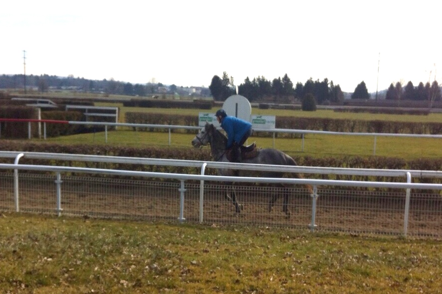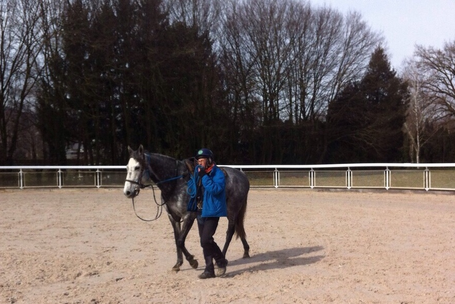 Beim Ziel - aber in Gegenrennrichtung und auf der Trainingsbahn. Vielleicht gibt es irgendwann ja wieder ein Rennen für Remedial auf ihrer Heimbahn, wo sie einst Jockey Club-Zweite war.