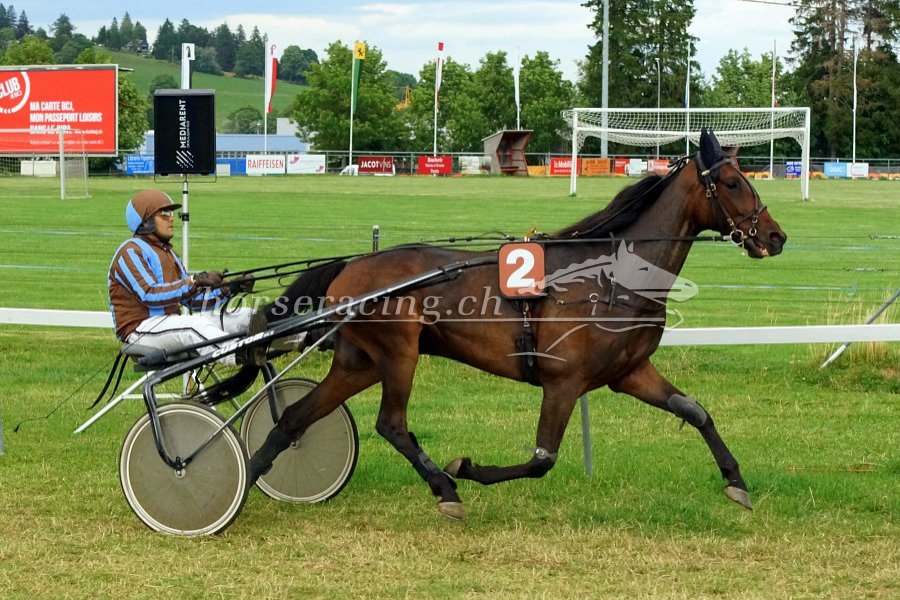 Eine starke Leistung zeigte auch Elk, der erstmals in Saignelégier angetreten war. Beim ersten Startversuch war er super weggekommen. Doch es war Fehlstart (nicht wegen Elk) und anschliessend machte er einen Fehler, verlor viel Boden und schien alle Chancen verloren zu haben. Doch Loris führte Elk behutsam wieder ans Feld heran. Und in der letzten Gegenseite rückte Ek mit einem sehenswerten Rush an etwa dritte Stelle auf. Im Einlauf kämpfte er tapfer weiter und holte sich den tollen zweiten Platz. Für ihn geht es nun in Avenches weiter, wo er in den nächsten Monaten ein paar interessante Rennen hat.