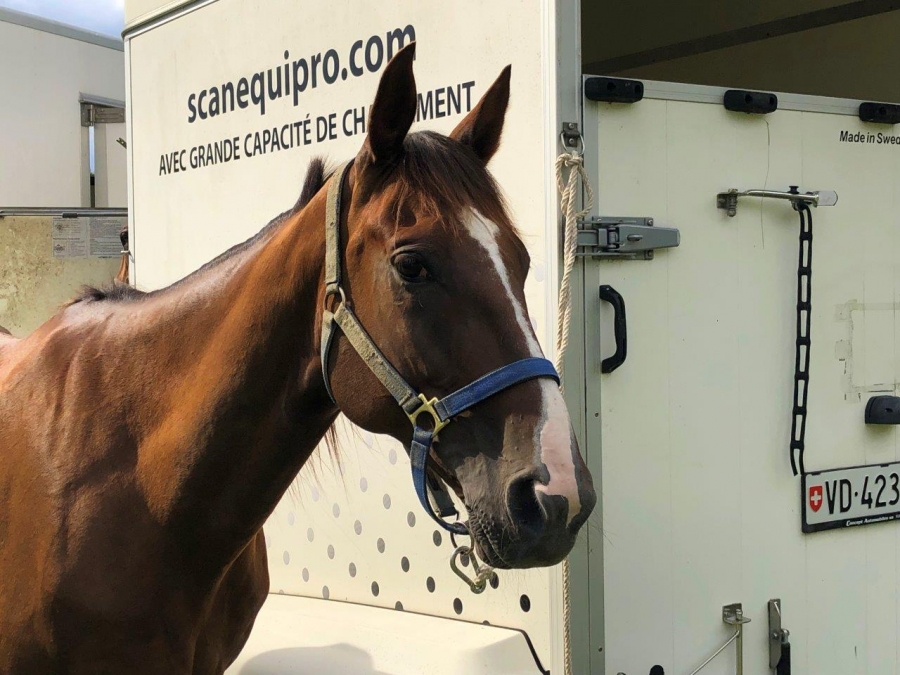 Vegas ist so brav, dass er problemlos einfach aussen am Hänger angebunden wartet.