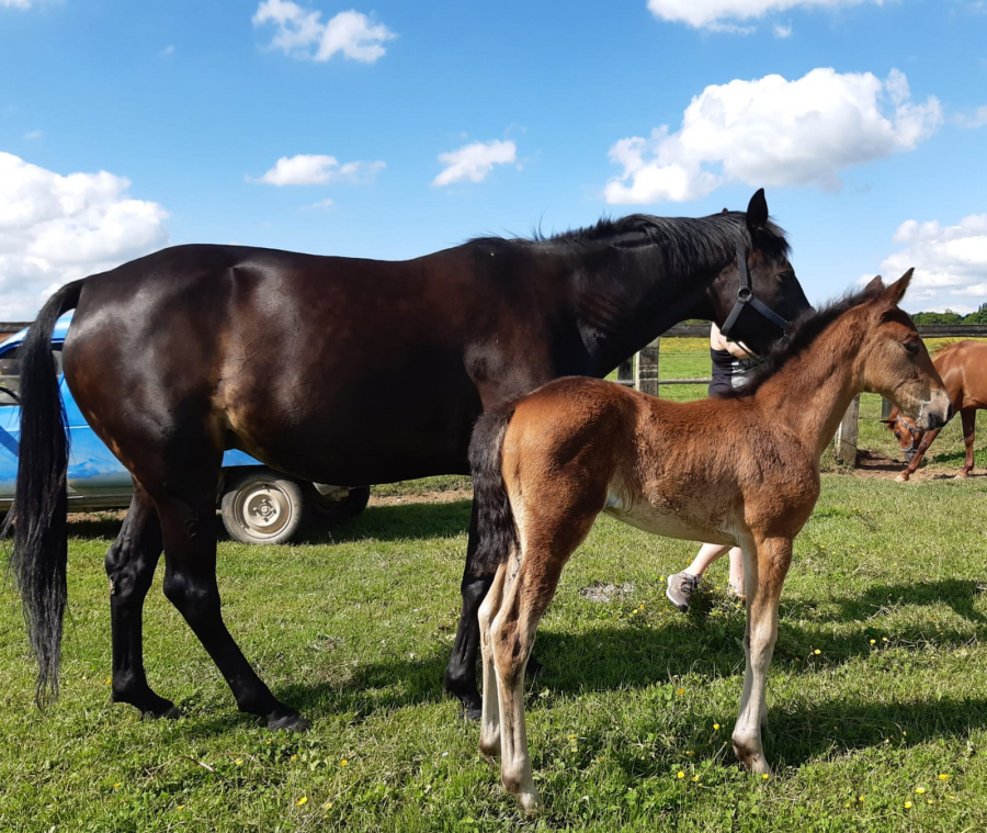 Canone mit La Formidable am Tag nach ihrer Geburt im Haras de Fligny.