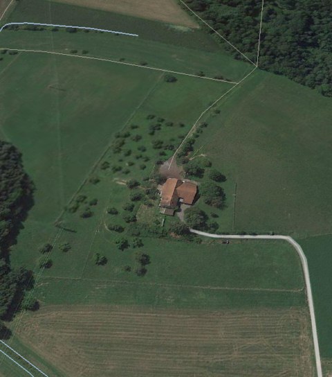 Der Burgstallhof von oben - die vielen Apfelbäume sind nicht zu übersehen.