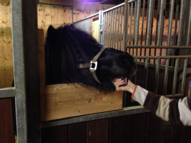 Auf dem Burgstallhof angekommen (es war schon recht dunkel), waren (fast) alle schön brav. Remedial schloss sofort Bekanntschaft mit Roma und Zauberlied, die auch dort sind. Rushi hatte auch sogleich einen neuen Kumpel gefunden. Nur Royal musste natürlich als Hengst zuerst Präsenz markieren und seine beiden Boxennachbarn, einen grossen Fuchs(-Wallach) und Pony Samson, zu beindrucken versuchen.
