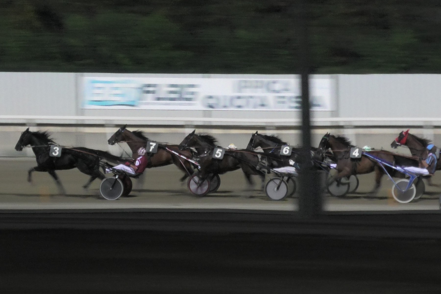 Wir hatten mit Startnummer 8 (in der zweiten Reihe ganz innen hinter dem Favoriten) ein einigermassen schnell gelaufenes Rennen erwartet. Es kam anders. Der erste Kilometer wurde in rund 1:17 gelaufen - für diese Klasse Pferde fast schon ein Bummeltempo. Am Ende lief Divina die 2060 Meter durchschnittlich in einer Kilometer-Zeit von 1:14,9 (der Sieger 1:14,6). Das bedeutet, dass der zweite/letzte Kilometer deutlich schneller war. Wobei nicht der ganze, dann wirklich beschleunigt wurde eine gute halbe Runde vor Schluss (die letzten 500 Meter wurden in 1:08 zurückgelegt... inklusive dem Schlussbogen). DIVINA blieb gut mit dabei, dann folgte die unglückliche Szene im Schlussbogen: Ein müder Gegner drückte nach innen, das gegnerische Rad hängte beim rechten Rad von Divina ein. "Ich musste zurücknehmen und dann nochmal beschleunigen", schilderte Marco die Szene. Dies alles in einem wirklich ungünstigen Moment. Doch Divina packte nochmal schön an und kam am Schluss näher zu den vor ihr trabenden Hengsten. Als Fünfte war sie recht deutlich vor dem Restfeld und ihrerseits nahe bei den Plätzen 4 und 5 (Reduktion jeweils 1:14,8).