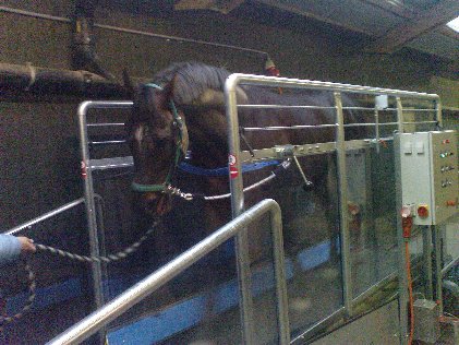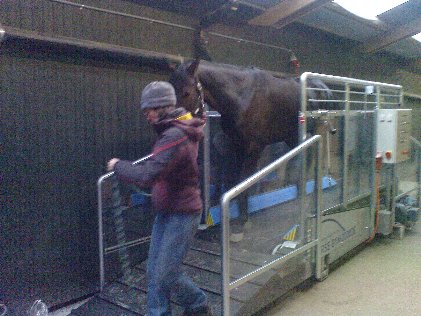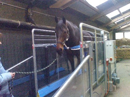 "Das Fitness-Studio fürs Pferd" - das steht auf dem Laufband, welches am Mittwoch nach Ostern geliefert wurde. Nun, das tägliche Training auf der Bahn steht natürlich noch immer im Vordergrund. Doch wir versprechen uns vom Laufband, welches als Ergänzung gedacht ist, einiges.