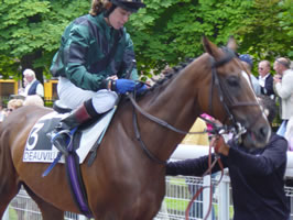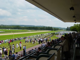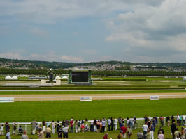 Weil Natalie Friberg in Deauville mit zwei Bocskai-Pferden im Einsatz war (Rang 8 mit One Touch gegen sehr starke Gegner, Rang 5 mit Imperial Wonder in einem 17er-Feld), machte ich (Markus Monstein) mich am Freitag mit meinem alten Subaru (handgeschaltet und mit der unsäglichen Gabe, ab ca 130 km/h einen so lauten Geräuschpegel von sich zu geben, dass telefonieren unmöglich wird) auf den Weg von Dielsdorf nach Deauville. (Dies weil der Nachtzug ausgebucht war und ein Flug so kurzfristig 1000 Franken gekostet hätte...) Die 850 Kilometer so ganz allein in einer Etappe zurückzulegen, schien mir etwas gar weit. Vor allem, weil ich erst um 21.15 Uhr aufbrechen konnte. So nahm ich mir vor, bis um Mitternacht zu fahren und dann Pause zu machen. Mein mobiles Navi-System (Medion Navigator, für 500 Franken im Interdiscount) leistete ganze Arbeit, sehr zu empfehlen. Um 01.30 Uhr war ich dann trotz der netten Frauenstimme aus dem handlichen Gerätchen müde. Auf einem Parkplatz machte ich es mir auf dem Rücksitz meines Autos (mit Schlafsack) gemütlich und schlief tief und fest bis mich der Wecher um 6 Uhr aus den Träumen riss. Zum Frühstück gab es Meisterzopf vom Migros (ebenfalls empfehlenswert), Joghurtdrink und sonstige Leckereien. Um 6.15 waren die Abfahrtsvorbereitungen (inklusive Wasch-Aktion auf einem wenig anmächeligen WC) soweit fortgeschritten, dass an ein Weiterfahren zu denken war. Von dort an verlief alles völlig ohne Probleme. Pünktlich um 10.15 Uhr traf ich in Deauville an. Unterwegs hatte Christoph Müller, der Frauenfelder Präsi angerufen und gefragt wann ich ankomme. Um 10 sei er dann am Tennis Spielen, aber wir würden uns später auf der Rennbahn treffen. Nun, als ich auf dem Weg zu unserem Hotel (4 Sterne... gehört zur Lucien Barrière-Gruppe, liegt direkt am Meer) kurz warten musste, schaute ich nach rechts auf einen Tennisplatz unmittelbar neben der Strasse - und wer spielte dort? Richtig, Mr. Müller, Frauenfeld, Schweiz. So klein ist die Welt. Und im Hotel Royal angekommen, eben erst in den Lift gestiegen, war auch schon Alicia Müller, die Frau von Christoph dort... So weit so gut zur Anreise. Vielmehr dürften die Renntags-Eindrücke interessieren. Hier also exklusiv... Die Rennbahn von Deauville ist sehr gepflegt. Ein riesiger Führring, schöne Tribüne, mehrere Restaurants - und ein Jockey-Gebäude, das fast so gross ist wie auf einigen hiesigen Rennbahnen die Tribüne. Schon am Samstag war einiges los. Christoph Müller führte uns durch die Anlage. Schon beim Parkieren bekamen wir angenehm zu spüren, dass man den Frauenfelder Präsi hier kennt. Ohne selbst einen Platz suchen zu müssen, kam ein Helfer von France Galop herangesaust und zeigte mir, ich soll aussteigen. Er fuhr meinen alten Subaru dann auf den Parkplatz. Kaum im Führring angekommen, kam schon Christophe Lemaire auf seinen Namensvetter Müller zu - und wir hatten eine Verabredung zum Kaffe-Plausch mit einem der weltbesten Jockeys. So weit so gut. Am Müller-Tisch (mit den Barbes und der Familie Asmussen - leider ohne den verhinderten texanischen Cowboy Cash Asmussen) liess es sich gut leben. Und Christophe Lemaire (der sich übrigens tatsächlich nur "Christophe " nennt und NICHT "Christophe Patrice") kam dann tatsächlich zum gemütlichen Plausch. Mit seiner Verlobten und einem süssen Baby... Plauderte munter über den Swiss-Derby-Sieger Peintre Bleu, dem er durchaus einen Gruppe-III-Sieg zutraut und den er nächstes Mal vielleicht etwas offensiver reiten will. Dann aber vor allem über die Superstute Divine Proportions und was für ein mega-Gefühl es sei, sie zu reiten. Dann kamen die Nassau Stakes und die andere Top-Stute, Alexander Goldrun. Dieses Rennen wollte Lemaire nicht verpassen. Schaute sich alles genau an und nickte anerkennend. Er freue sich schon auf ein Duell... Dann war Natalie an der Reihe mit One Touch. Sie sollte ihn ganz hinten, auf dem letzten Platz "schlafen" lassen und dann in der langen Zielgeraden angreifen. Das tat sie, doch One Touch schlief einige Längen hinter dem Feld, schien im letzten Bogen auf dem weichen Boden etwas zu schwimmen. Im Einlauf zog er noch gut an, kam aber nicht mehr näher als 6 Längen zum Sieger heran (Rang 8). Dann kam der Sonntag und damit das grosse Rennen - wir kamen wegen des Regenwetters (und Verkehr) knapp zu spät auf die Bahn. Wollten uns einen Parkplatz suchen, als ein Helfer uns erkannte. Wir seien doch gestern mit "Monsieur Müllääääär" hier gewesen, oder? Ja, genau. Und schon hiess es aussteigen und sich nicht weiter um das Auto kümmern. Wir sahen gerade noch wie der Swiss-Derby-2. The Devil mit Jean-Michel Breux ein erlesenes Sechserfeld von der Spitze aus in strömendem Regen bezwang - sehr zu meinem Ärger, weil ich Sieg und Platz sowie die Zweierwette feinsäuberlich vorbereitet hatte (entgangener Gewinn ca 500 EUR, mit einem geplanten Einsatz von 100 EUR). Wie uns Christoph Müller erklärte, war Madame Niarchos erstmals auf dem Platz - sie hatte ihre Super-Stute Divine Proportions nie zuvor laufen gesehen. Und ich dachte mir sogleich, hoffentlich ist das nicht ein schlechtes Omen. Schon im Führring dann war sofort klar, dass es kein schlechtes Omen geben konnte. Die Göttliche sah einfach umwerfend aus. Strahlte Selbstsicherheit, Klasse, Coolness, Kraft und Eleganz aus. So gingen wir auf die Tribüne. Ungewohnt, dass ich mit dem Feldstecher weniger sah als die Leute ohne (die riesige LCD-"Leinwand" machte es möglich). 1600 Meter werden auf einer Geraden gelaufen. Divine Proportions ist lange eingeklemmt. Dann findet Christophe Lemaire eine Passage, kurze Aufmunterung - und es scheint als könne sie fliegen. Die Göttliche gegen ein paar Irdische... Er habe nicht mehr gemacht als nötig, meinte der Jockey hinterher. In zwei Wochen im "Marois" gelte es dann ernst...