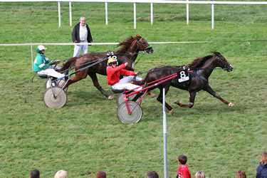 Super 2.Platz für Joyau Poterie in Aix-les Bains (Fr 29.Juli ) Der seit kurzem für Jacques Juriens laufende Traber Joyau Poterie holte sich am Freitag in Aix-les-Bains (Gras, 2700m, 32'000 EURO) gegen 14 Gegner einen hervorragenden zweiten Platz. Gefahren wurde er von J.Boillerau. Im selben Rennen konnte sich Hermondo (Patricia Felber Besitzerin und Trainerin, gefahren von B.Thomas) nicht plazieren. Hermondo war im Gegensatz zu Joyau Poterie mit Zulagen gestartet.
