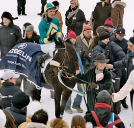 GP St.Moritz-Sieger Armand auf Neusser Sand 2. - White Turf im Visier (Sa 19.11.05) Der diesjährige Sieger im GP St.Moritz hat auf Sand bereits wieder einen Ehrenplatz geholt. Im Frühling (April) lief der Schiergen-Schützling mit der Schnee-Kondition noch auf Rang drei eines Ausgleich-I. Seither hatte er nur noch zwei Starts (einmal Jagd!) bestritten, ohne Ausbeute. Nun holte er nur um Kopf geschlagen einen Ehrenplatz in Neuss. Trainer Peter Schiergen machte deutlich, dass die Ambitionen von Armand ganz klar Richtung Titelverteidigung gehen. Für Jockey Wiliam Mongil, der dieses Jahr 55 Sieger geritten hat, ist dies das letzte Wochenende im Rennsattel, bevor er eine vierwöchige Sperre absitzen muss. Er war in Köln in der Alkohol-Kontrolle hängen geblieben und ist deshalb vom 21.November bis zum 20. Dezember zum Zuschauen verurteilt.