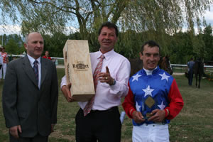 Auteuil-Gruppe-I-Sieg für den Zürcher Jörg Vasicek dank Millenium Royal! (Sa 5.11.05) Was für ein Triumpf für den Esslinger Besitzer Jörg Vasicek. Das langjährige RVZ-Vorstandsmitglied erlebte am Samstag den Gruppe-I-Sieg seines Millenium Royal im Grand Prix d'Automne, dem grössten Hürdenrennen Frankreichs (4800m, Gruppe I, 300'000 EUR - über 460000 Franken). Der von François Doumen trainierte Mansonnien-Sohn, der als 8:1-Aussenseiter ins Rennen gegen 9 Gegner gegangen war, griff in der Zielgeraden aus dem Mittelfeld kommend an und gewann mit Arnaud Duchêne im Sattel letztlich locker und leicht mit 4 Längen Vorsprung. Grosse Emotionen danach beim Equidia-Interview bei Arnaud Duchêne. Sein Vater Roger Duchêne, auch in der Schweiz alles andere als ein unbekannter, war im April 1993 ebenfalls in Auteuil zu Tode gestürzt - 10 Jahre zuvor hatte er genau diesen GP d'Automne gewonnen. "Mein Vater war das ganze Rennen über bei mir", sagte Arnaud Duchêne mit zittriger Stimme und Tränen in den Augen ins Mikrofon, "dieser Sieg ist etwas ganz besonderes für mich!" Für den fünfjährigen Millenium Royal war es der fünfte Sieg beim sechsten Hürden-Start. Er gewann auf einen Schlag 135'000 EURO, rund 210'000 Franken.