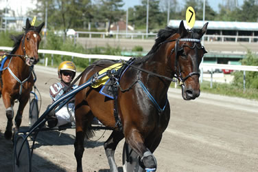 Natalie Friberg mit Riesen-Aussenseiterin 3. in Norwegen (So 12.6.) Natalie Friberg, die in diesem Jahr die Schweiz an der Fegentri-Weltmeisterschaft der Amateurrennreiterinnen vertritt, hat weiterhin wenig Losglück. Zum fünften Mal (bei bisher 10 Rennen, zu denen sie eingeladen wurde) hatte sie auf dem Papier nur kleine Aussenseiter-Chancen (einmal kam zudem das Pferd einfach nicht...). Für den Ritt auf der norwegischen Bahn Ovrevoll erhielt Friberg die vierjährige Stute Second Wind zugelost, die bisher bei 17 Starts lediglich zweimal Geld verdient hatte. Und ausgerechnet in diesem Rennen war es das dritte Mal... Gegen Pferde, die sie des öfteren nur von (weit) hinten gesehen hatte. "Wir waren am tiefsten oder zweittiefsten eingestuft, kamen aber im Einlauf noch stark auf", freute sich Natalie Friberg. Der Sieg ging an die Österreicherin Susanne Jischa vor der Irin Pauline Ryan. Mit Rang drei und 6 Punkten ist Natalie Friberg nach dem 11. von insgesamt total 24 Wertungsläufen bis auf wenige Punkte an die Leaderin Elisabet Johansson (NOR) herangekommen. Siehe auch Internet-Seite von Natalie Friberg