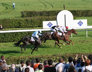 Swiss-Derby-2. The Devil holt sich in Maisons-Laffitte den ersten Sieg (Mi 13.7.) Im Derby in Frauenfeld hatte es nicht ganz zum ersten Sieg gereicht für Frau Binswangers Hengst The Devil. In einem Sieglosen-Rennen in Maisons-Laffitte war es dann aber am Mittwochnachmittag für den Suter-Schützling soweit. Gleich mit vier Längen gewann The Devil unter Jean-Michel Breux ein mit 18'000 Euro dotiertes Rennen über 2200 Meter gegen 11 Gegner. "Weiss"-Dreijähriger Mount Etna holt sich Rang 4 im GP d'Aix-les-Bains (Di 11.7.) Der Grand Prix d'Aix-les-Bains (2500 Meter, 24'000 EURO). war am Sonntag das Ziel von Mount Etna (u.a. dritter im Frühjahrspreis und 6. im Derby). Der von Miro Weiss für Hans-Georg Stihl trainierte Fuchs sah dabei lange wie der Sieger aus. Dies nach einem Rennen, das zunächst im Bummeltempo absolviert wurde. Sébastien Hamel übernahm deshalb dann die Spitze. In der Gegenseite wurde das Tempo besser, Mount Etna konterte innen, lag im letzten Bogen in Führung, lag mitte der Zielgeraden in Führung - und musste dann noch noch drei Pferde passieren lassen. Rang vier, 1.25 Längen hinter dem Sieger, nur Nase hinter dem drittplazierten. Mit etwas glücklicherem Rennverlauf (sprich mehr Tempo), wäre deutlich mehr drin gelegen. So blieb der Trost von immerhin 2400 Euro Preisgeld. Song Writer-Leistung aufgewertet - Ostankino gewinnt Gruppe II ! (So 11.7.) Dass das Listed-Rennen, welches Paul Baumgartners Song Writer vor drei Wochen in Lyon-Parilly bestritten (und als 4. beendet) hat, äusserst stark besetzt war, hat sich im Nachhinein bestätigt. Der dort zweitplazierte Ostankino (Pasquier, Lellouche, Wildenstein) hat am Sonntag in Maisons-Laffitte ein Gruppe-II-Rennen über 2800 Meter Start-Ziel gewonnen! Ostankino war in Lyon nach deutlich besserem Rennverlauf als Song Writer als zweiter ins Ziel gekommen, 1.5 Längen vor Song Writer (der zwar 1.5 Kilo weniger trug, am Schluss aber Boden gut machte). Für den "Bocskai" soll es nun am 20. Juli in Vichy über 2400 Meter (20'000 EURO) weitergehen. Unter den 31 Nennungen befindet sich auch Moonrise, die letztjährige Dielsdorfer Stuten-Classic-Siegerin... Das 1.August-Rennen in Avenches ist für Song Writer kein Thema. Dort soll der Derby-3. Tirwanako dafür wieder angreifen... "O'Brien" Oratorio fügt Motivator die erste Niederlage zu! (Sa 2.7.) Diese Eclipse Stakes (Gruppe I, 2000m, 400'000 Pfund) in Sandown gehen in die Geschichte ein. Als Duell zwischen Shamardal (franz. "Derby") und Motivator (englisches Derby) angekündigt, hat am Ende der lachende Dritte Oratorio die Nase vorn, mehr noch, fast die Hälfte seines Körpers. Und dies als 12:1-Aussenseiter. Johnny Murtagh entschied sich, den Sprint früh, von zweiter Stelle aus zu lancieren. Lange sah alles gut aus, doch auf den letzten 50 Metern zog Kieren Fallon mit Oratorio vorbei. Grosser Triumph für Trainer Aidan O'Brien mit dem Zweiten aus den Irischen 2000 Guineas, der im von Motivator gewonnenen englischen Derby auf zu weiter Distanz lediglich Rang 10 belegt hatte. Der Danehill-Sohn Oratorio aus dem mächtigen Coolmore-Imperium wird nächstes Jahr seine Decktätigkeit aufnehmen und nicht länger im Rennstall bleiben. Interessant: Gegen den grossen Abwesenden Shamardal (mit einem Chip out - Karriere-Ende, siehe weiter unten) hat Oratorio bei drei Versuchen stets den kürzeren gezogen (zuletzt in den St.James'Palace Stakes in York). Über diese Elle gerechnet hätte Motivator das Duell gegen Shamardal ebenfalls verlieren müssen. Wie auch immer, beim fünften Start hat Motivator also erstmals ein Bezwinger gefunden. "Unschlagbare" Pferde gibt es in der heutigen Zeit offenbar keine mehr...