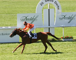 Swiss Derby weiter aufgewertet: Peintre Bleu und Royal Island 2. (10.9.05) Das diesjährige Davidoff-Swiss-Derby ist nachweislich eines der bestbesetzten in der Geschichte - und dies in grosser Breite. Derby-Sieger Peintre Bleu (diesmal mit Olivier Peslier im Sattel) verpasste einen Listed-Treffer ( 47000 EUR, 2200m) in La Teste nur hauchdünn, holte sich Rang zwei. Royal Island, der zunächst die Swiss-2000-Guineas in Dielsdorf gewonnen hatte, danach im Frühjahrspreis den Ehrenplatz und im Derby Rang 5 belegte, zeigte in Doncaster in einem sehr stark besetzten Handicap (1600 Meter, 17'400 Pfund für den Sieger) eine vorzügliche Leistung. Unter Joe Fanning musste er sich als 17:1-Aussenseiter nur um einen Hals geschlagen geben. "Einen Galoppsprung später hätte er gewonnen, sagte mir Joe Fanning", berichtete ein glücklicher Markus Gräff am Telefon. Der Johnston-Schützling Royal Island verdiente 6600 Pfund (rund 14'000 Franken) und soll als nächstes entweder im GP LGT Jockey Club in Dielsdorf laufen oder eine Woche später in Newmarket im Cambridgeshire-Handicap.