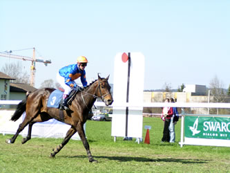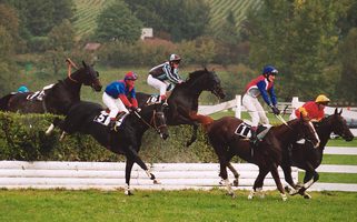 Natalie Friberg siegt in Duindigt - Zweite im WM-Klassement! (27.9.05) Die Schweizer Amateur-Rennreiterin Natalie Friberg hat am Sonntag im holländischen Duindigt mit dem Araber Cheyenne überlegen das viertletzte Rennen im Rahmen der Fegentri-Weltmeisterschaft gewonnen. Mit diesem Sieg und den damit verbundenen 20 Punkten hat sie sich (trotz zwei unplazierten am Samstag in Köln mit einem Riesen-Aussenseiter und einem weiteren Rennen in Duindigt am Sonntag) auf dem zweiten Platz festgesetzt. Nach unserer Rechnung mit rund 10-12 Punkte Rückstand auf die Österreicherin Irene Kohlweiss. Für die verbleibenden 3 Rennen wird Friberg leider nur 2 bestreiten können. Für den nächsten Einsatz in den USA wurde sie (im Gegensatz zu den anderen der Top-Five) schlicht nicht eingeladen. Sie muss also ihre Chancen dann in Pardubice und Neuss wahrnehmen. Roland Müllers Abrivard gewinnt Réclamer in Maisons-Laffitte (24.9.05) Der von Eric Libaud trainierte dreijährige Abrivard gewann am Samstag für Besitzer Roland Müller in Maisons-Laffitte ein mit insgesamt 19'000 EURO lohnend dotiertes Verkaufsrennen. Der Platini-Sohn, der von Christophe Soumillon geritten wurde, war als Favorit ins Rennen gegangen und verdiente 9500 EUR (rund 15'000 Franken). Sorg-Dreijähriger Chiaro gewinnt 75'000-EURO-Rennen in Auteuil! (23.9.05) Was für ein Erfolg für den Schaffhauser Ex-Galopp-Schweiz Präsidenten Hans-Peter Sorg! Sein selbst gezogener Dreijähriger (von Hamas aus der Diamond Prospect-Stute Link Diamond) gewann am Freitag in Auteuil ein mit 75'000 EURO dotiertes Hürdenrennen über 3600 Meter. 36'000 EURO (rund 56'000 Franken) fliessen auf das Konto des Besitzers - der ja gleichzeitig auch noch Züchterprämien einstreicht... Mit F. Estrampes im Sattel liess Chiaro seinen hartnäckigsten der nur zwei Gegner um eine halbe Länge hinter sich. Trainiert wird er von Jean-Luc Pelletan, der bis zum Derby auch den St.Leger Sieger Tirwanako unter seinen Fittichen hatte.