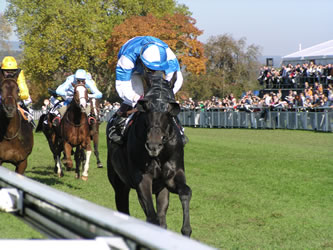 1000. Sieg für Godolphin-Imperium - Scheich-Jubel total... (Fr 21.Oktober 05) Alles begann am 24. Dezember 1992 mit dem ersten Sieg in den königsblauen Farben von Godolphin in Nad El Sheba (Cutwater). Am Mittwoch 18. Oktober 2005 nun der Riesen-Meilenstein für die "Blue boys": Der zweijährige Highlander gewann in Nottingham ein Maidenrennen und sorgte damit für den sage und schreibe 1000. Godolphin-Sieg! Schön für Frankie Dettori, dass er, der Stalljockey, bei diesem Jubiläumstreffer im Sattel sass. Nicht bekannt ist, ob der Italiener danach zu seinem berühmten Dettori-Jump (bei Gruppe-Siegen oder sonstigen wichtigen Rennen) angesetz hat... Gleich im nächsten Rennen sorgte ein weiterer Zweijähriger (Shakiri) für Treffer 1001. Begonnen hatte das Godolphin-Imperium mit lediglich 4 Pferden im 1992. Mittlerweile haben die Scheichs unglaubliche 123 Gruppe-I-Rennen gewonnen (also rund 8-10 pro Jahr!). Die bekanntesten Cracks in den Godolphin-Farben waren/sind: Dubai Millennium, Daylami, Fantastic Light, Lammtarra, Swain, Sakhee, Grandera, Sulamani, Dubawi oder Shamardal.