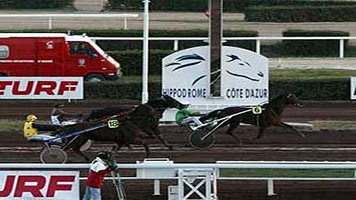 Kendo de Bellande in Perrin-Farben 2. in einem 30'000-EUR-Rennen! (30.12.05) Grosser Auftritt für Bernard Perrins Frankreich-Trab er Kendo de Bellande am zweitletzten Tag der Saison 2005 in Cagnes sur Mer. Mit seinem Trainer Yannick-Alain Briand versuchte er sich auf höherer Ebene (30'000 EUR, 2850m, Bänderstart) und hielt sich hervorragend. Rang 2 in 1:17,4 - nicht weit vom Sieger. Er, der vor dem Rennen die zweittiefste Gewinnsumme (69'330 EUR) aller 18 Starter hatte, schraubte diese gleich um 7500 EUR rauf - womit er in einem Rennen mit gleichen Konditionen nächstes Mal mit Zulagen an den Start gehen müsste... (Meldung dank Adrian Gosteli)