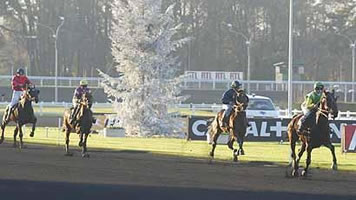 Président-Sieger Kito du Vivier holt GNT-Finale (Gr II) mit Verbeeck (So 18.12.05) Der diesjährige Avencher Prix du Président wird nachträglich kräftig aufgewertet, obschon der Star Love You damals kurzfristig absagen musste. Kito du Vivier, der schon in Avenches mit Driver-Genie Jos Verbeeck gewonnen hatte, schaffte in Finale des Grand National du Trot (Gruppe II, 2850m, Bänder, 150'000 EUR) doch tatsächlich das Kunststück auf absolute Klassepferde 25 Meter siegreich aufzuholen. In einem begeisternden Finish, von Verbeeck einmal mehr meisterhaft pilotiert, setzte Kito du Vivier in der Zielgeraden zu einem unwiderstehlichen Finish an und entriss Magot du Ravary den Sieg. Dramatisch ging es schon vor dem Start zu. Riesenaussenseiter Idéo du Cadran stieg auf dem Weg zum Start, verlor das Gleichgewicht und fiel rücklings zu Boden. Zum Glück etwas seitlich, so dass sein Trainer, Besitzer und Fahrer Benjamin Goetz nicht zu Schaden kam. Die beiden gingen danach an den Start, als wäre nichts gewesen. Dies im Gegensatz zu Land Danover (Thierry Duvaldestin), der die Bahn hinkend verliess (ohne Zwischenfall). Egli-Traber Origano Lap toller 2. in Vincennes (So 18.12.05) Riesen-Leistung einmal mehr von Origano Lap, der in den gelb-grünen Farben des Zürcher Oberländers Koni Egli am Sonntag in Vincennes in einem 80'000-EUR-Rennen (2200 Meter, Bänderstart) lief und sich dabei nur um einen Hals geschlagen geben musste. Pierre-Yves Verva gab dem von Koni Egli selbst gezüchteten Ganymède Sohn ein ideales Rennen im Rücken der beiden Leader, griff im Einlauf an und scheiterte mit seiner Schluss-Attacke nur knapp an Oiseau des Feux (Pierre Levesque). Für den Ehrenplatz gab es auf einen Schlag 20'000 EURO (rund 31'000 Franken). Der erst dreijährige Origano Lap hat damit nach 20 Starts bereits 107'780 Euro (über 167'000 Franken) verdient... Vincennes-Auftritt: Kelly James wieder mit schlechtem Parcours (So 18.12.05) Schade, schade. Das derzeit wohl beste Trabrennpferd der Schweiz, die Kratzer-Stute Kelly James, kann in Paris-Vincennes einfach nicht zeigen, was sie wirklich kann. Beim zweiten Aufritt im Rahmen des diesjährigen Wintermeetings pilotierte sie ihr Trainer Renaud Pujol nicht sonderlich gücklich. In einem Stuten-Rennen (48'000 EUR, 2700m, Bänderstart) erwischten die beiden ganz aussen einen mässigen Start, waren dadurch gleich mal am Schluss des 14er-Feldes. In dritter Spur machte der Schweizer Fahrer- und Trainer-Champion dann Boden gut, griff "den Berg hinauf" sogar frech an, tauchte an zweiter Stelle auf, konnte aber nicht nach innen ziehen und blieb vor dem Schlussbogen in dritter Spur aussen "im Wind" hängen. So war bald einmal abzusehen, dass Kelly James, die tapfer kämpfte, ihren 3./4. Platz, den sie eingangs der Zielgerade inne hatte, nicht würde halten können. Die 16:1-Aussenseiterin kam schliesslich mit dem Feld, nicht allzu weit geschlagen um die Plätze (Rang 7 hätte noch fast 750 Franken gegeben, Rang 6 sogar rund 2200 Franken...) etwa auf Rang 10 ins Ziel. Die Siegerin Kate de Corveil reduzierte den Kilometer in 1:15,3 - für Rang 7 wäre 1:15,5 nötig gewesen. Wieder sagte auch der Equidia-Kommentator während des Rennens, Kelly James habe einen "schlechten Parcours", ein schlechtes Rennen. Und dieTurf-Schweiz wartet weiter darauf, dass Kelly James die Franzosen das Fürchten lehren wird. Wir würden sie gerne einmal mit einem alten "Vincennes-Hasen" wie z.B. Jos Verbeeck sehen. Ohne Renaud Pujol oder dessen Fans zu nahe treten zu wollen. In Vincennes gelten unter den Profis einfach andere Regeln. Das haben schon andere erfahren müssen. Wir fügen als Idee einfach das Beispiel seines Schweizer Berufskollegen Marc-André Bovay an, der für Ausland-Einsätze immer mal wieder auf den angesprochenen Star-Driver Jos Verbeeck oder vor allem auf Philippe Békaert zurückgreift - mit viel Erfolg notabene. Békaert wäre für dieses Rennen übrigens frei gewesen.