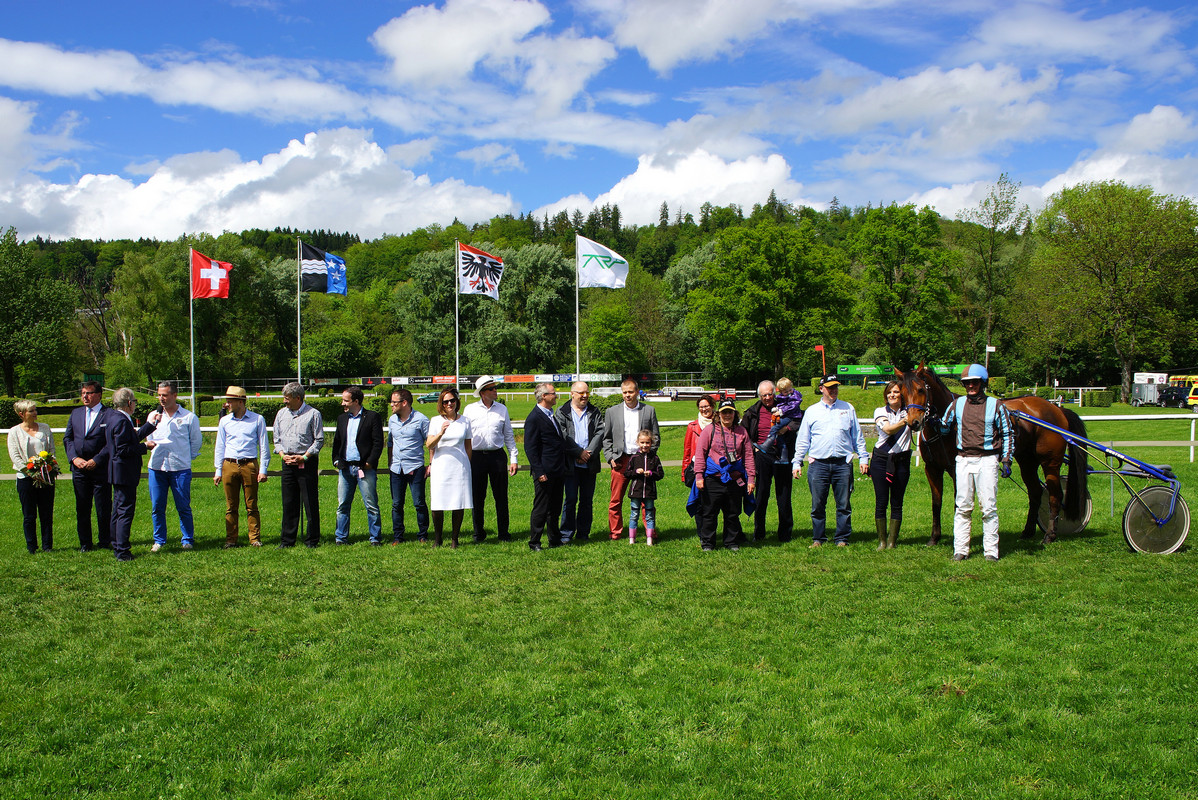 Zusammen mit den Sponsoren der Aarauer Gewerbetreibenden (links) und den Allegras (von den einige den Weg nicht an die Siegerehrung schafften... gab es ein sooo breites Sieger-Foto (Foto: Natalie Vorburger, www.horseracing.ch)