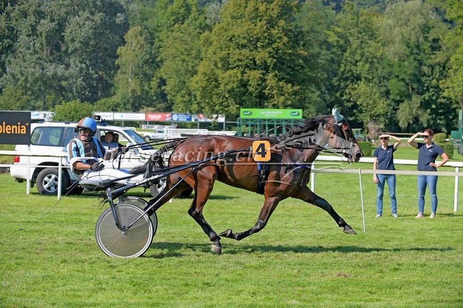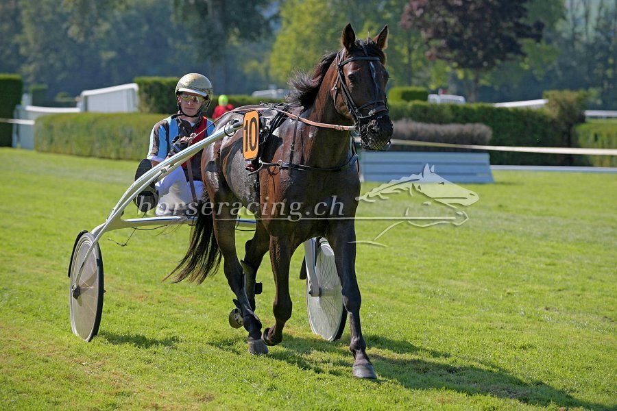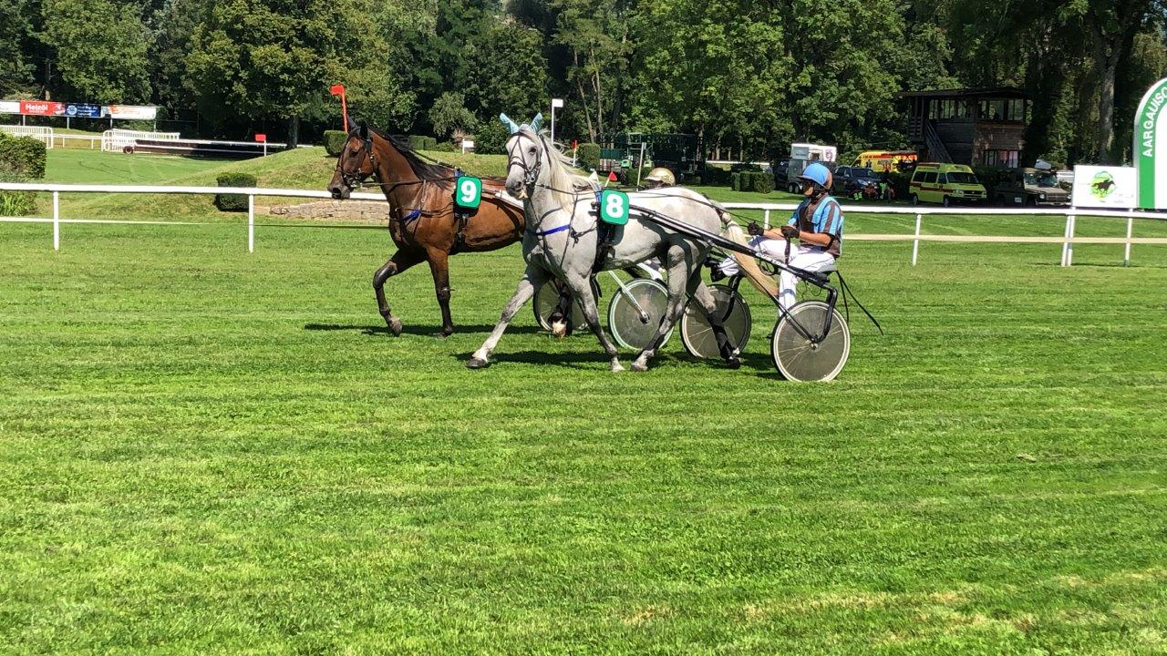Globi lief in der Meisterschaft ebenfalls stark und zeigte, dass er in dieser Klasse durchaus kompetitiv ist. Joey fuhr ihn wie geplant ganz auf Warten (mit seiner Startposition war auch gar nicht viel anderes möglich) und ohne einen Zwischenfall mit einem galoppierenden Gegner im letzten Bogen wäre vielleicht sogar noch etwas mehr als Rang fünf möglich gewesen. Wir sind damit aber natürlich zufrieden, das eröffnet andere Perspektiven, wenn er auf Gras so stark läuft. Wir planen, ihn in zwei Wochen ebenfalls noch einmal in Aarau laufen zu lassen.