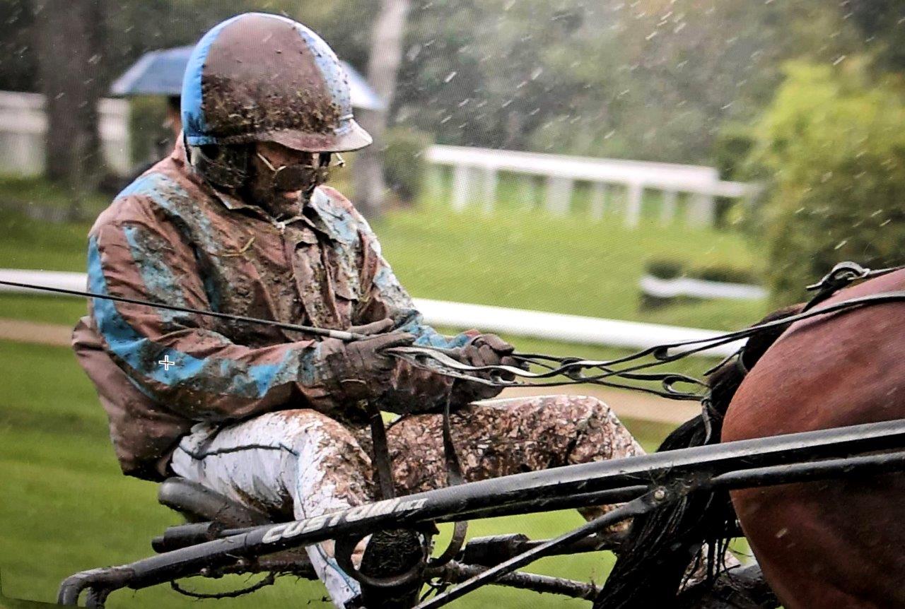 Globi (Joey) wusste zu Beginn des Rennens gar nicht, wie er unter diesem Bedingungen traben sollte. Er galoppierte sofort los und war disqualifiziert, bevor es richtig losgegangen war. Er soll nun am 22. September in Dielsdorf laufen (Daumen drücken, dass die Wetterfrösche mit ihren Prognosen bis dahin recht haben).