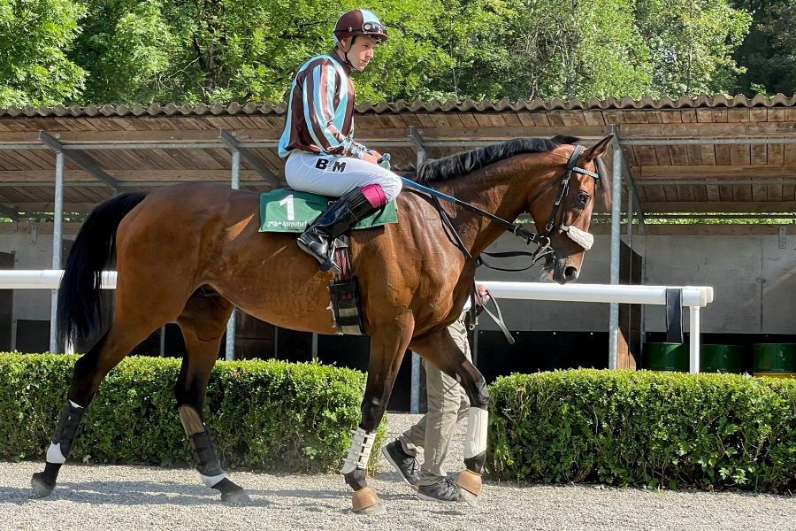 Um 16.40 Uhr ist FANDANGO auf der Jagdbahn an der Reihe. Er hat die Sommerpause sehr gut genutzt, sieht besser aus als im Frühling - nun sind wir gespannt, wie sich das auf der Bahn auswirkt. Jürg ist im Training sehr zufrieden mit ihm. Zum Glück ist es nicht mehr so heiss, das passt FANDANGO viel besser. Im heutigen Rennen ist alles möglich. Er wird wohl als Favorit ins Rennen gehen und hat die Klasse, alle zu schlagen. Es geht für uns in erster Linie darum, ihm ein Aufbau-Rennen zu geben. Ein Top-Resultat wäre natürlich schön, ist aber letztendlich sekundär. Michael Huber kennt ihn, wir haben Vertrauen in die beiden.