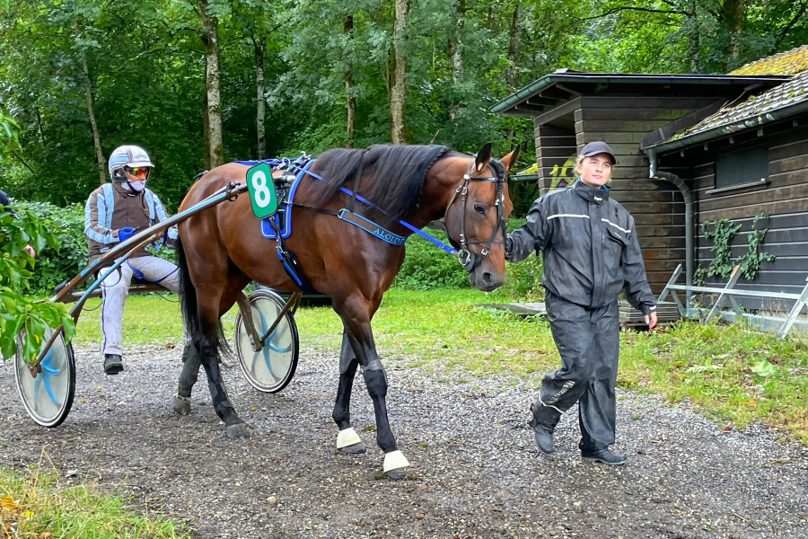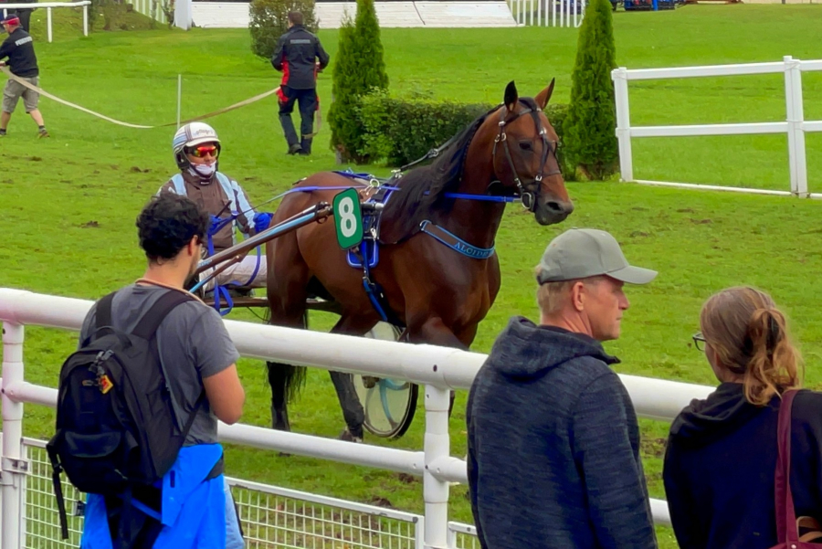 Dann war die Reihe an ALCIDE. Meisterschaft der Traber, das Rennen schlechthin... ALCIDE hatte einen sehr guten Heat absolviert. Wir hatten aber keine Ahnung, ob er auf dem doch kräfteraubenden Boden im Rennen bis zu Schluss durchziehen würde. Das Rennen entwickelte sich soweit gut für ALCIDE. Zu Beginn der Zielgeraden lag er an dritter Stelle. Loris liess ihn dann nach aussen driften, auf den wohl etwas besseren Boden. Im Nachhinein wäre er besser innen geblieben, meinte Loris, dann wäre ALCIDE Dritter geworden. Vielleicht, nicht sicher. Entscheidungen in Sekundenbruchteilen. Jedenfalls liess unser Italo-Hengst nicht locker, konnte erst am Schluss den Vorjahressieger nicht mehr in Schach halten. Ein sehr guter vierter Platz und das Wissen, dass der Boden auch keine Rolle spielt für ihn.