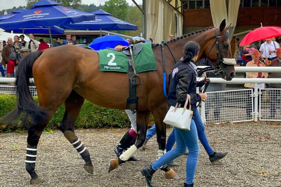 In Aarau fehlte nicht viel und wir hätten mit einem Paukenschlag in Form eines Sieges den ereignisreichen Tag begonnen. NOON musste einen Tick zu viel Rückstand wettmachen auf einen enteilten Gegner. Er tat dies mit viel Kampfgeist, einmal mehr gab er alles - es resultierte der vierte Ehrenplatz in dieser Saison (2 Siege). Loris war sehr zufrieden mit NOON, der in den kommenden Wochen einige interessante Rennen hat, insbesondere auch auf Gras, was ihm besonders gefällt.