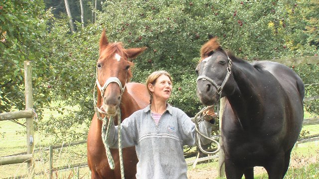Aber was sein muss, muss sein. Und so haben wir halt das beste draus gemacht. Jully und Michigan hatten auch gerade noch Besuch von unserer Physiotherapeutin Brigitte Stebler. Toni und Jully posierten mit Claudia - wobei es kein einziges Foto gab, auf denen ALLE drei gute Miene zum zugegebenermassen lustigen Spiel machten.
