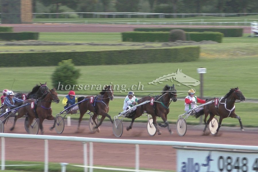 Rebus (ganz links mit Marcel) kam mit schönem Speed angebraust, zog dann aber gegen Swedishman (rechts) und Super Berry Chenou (Nr 4, Sieger) nicht ganz durch.
